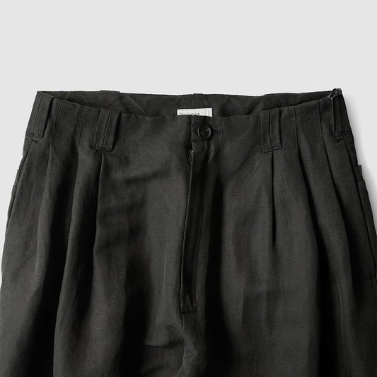 YOKE/ Linen Silk Kersey 3pleated Tapered Trousers "BLACK"