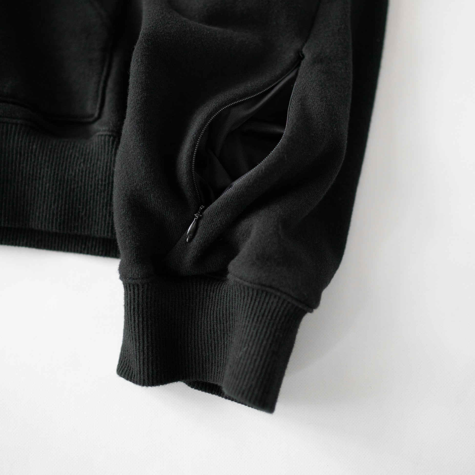 着丈と身幅のバランス、フードの大きさ等細かな調整をし、最高のバランスに仕上がっています。袖口にはアイコンとなるコンシールジップポケット。
