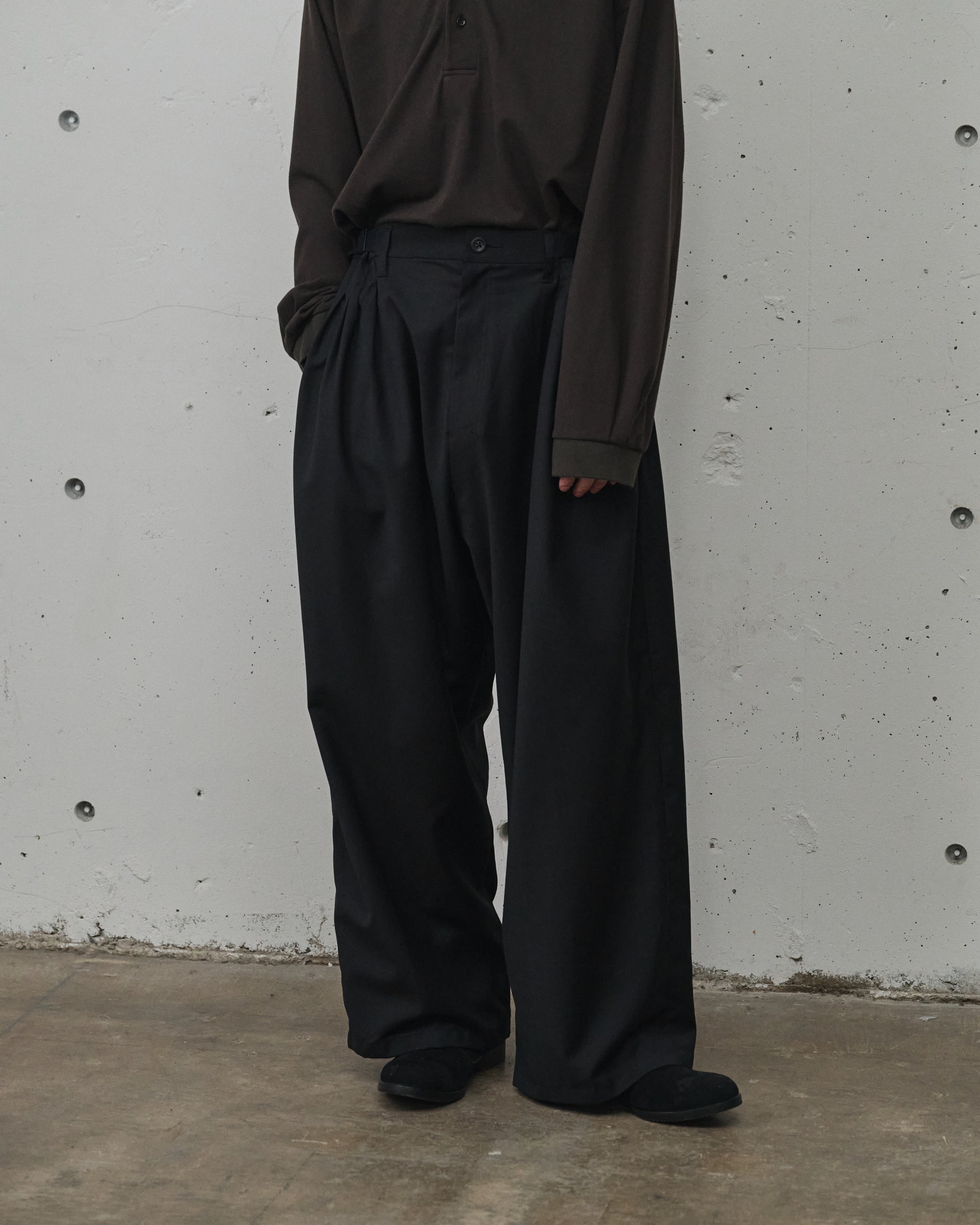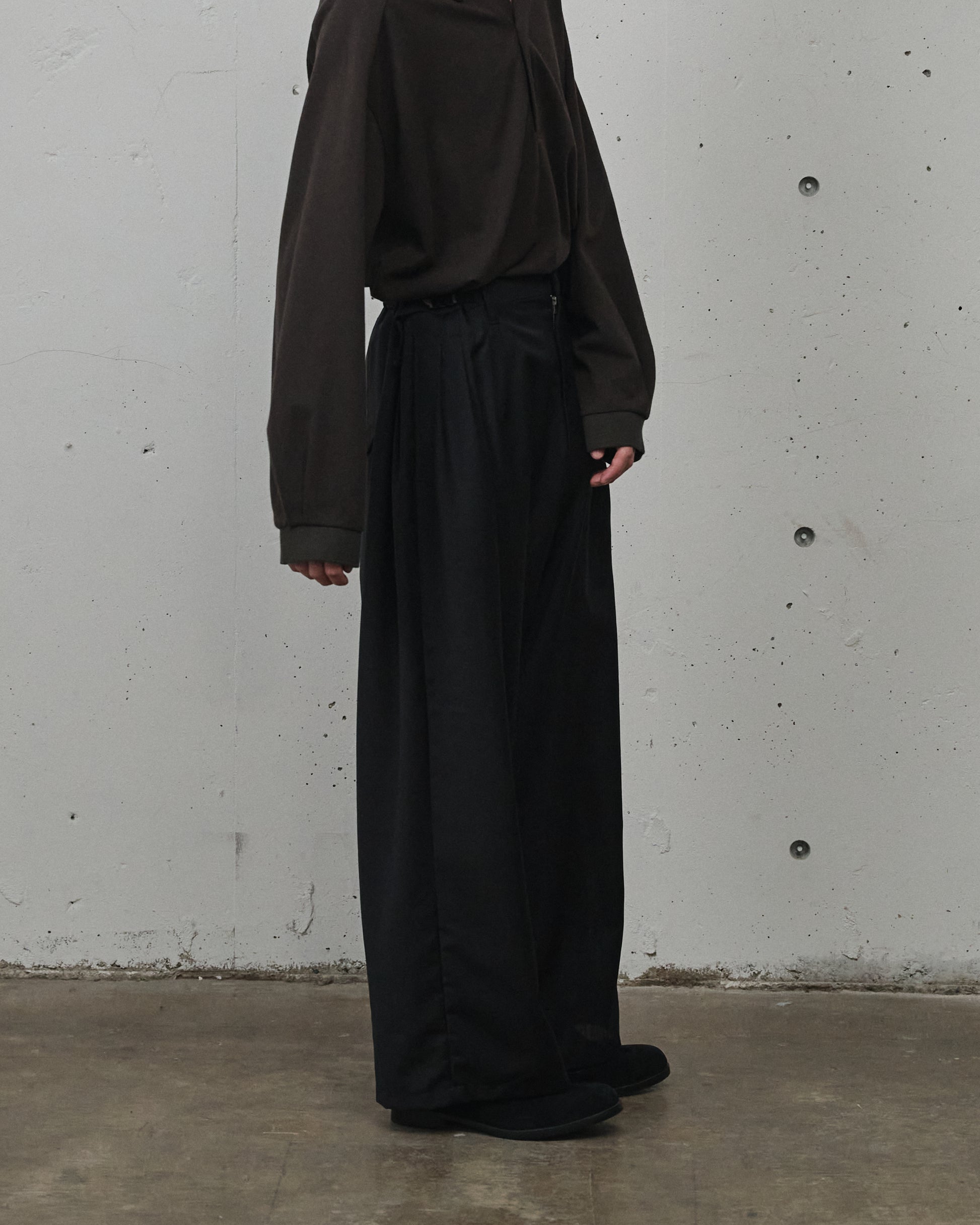 ANCELLM / BELTED WOOL SLACKS "BLACK"