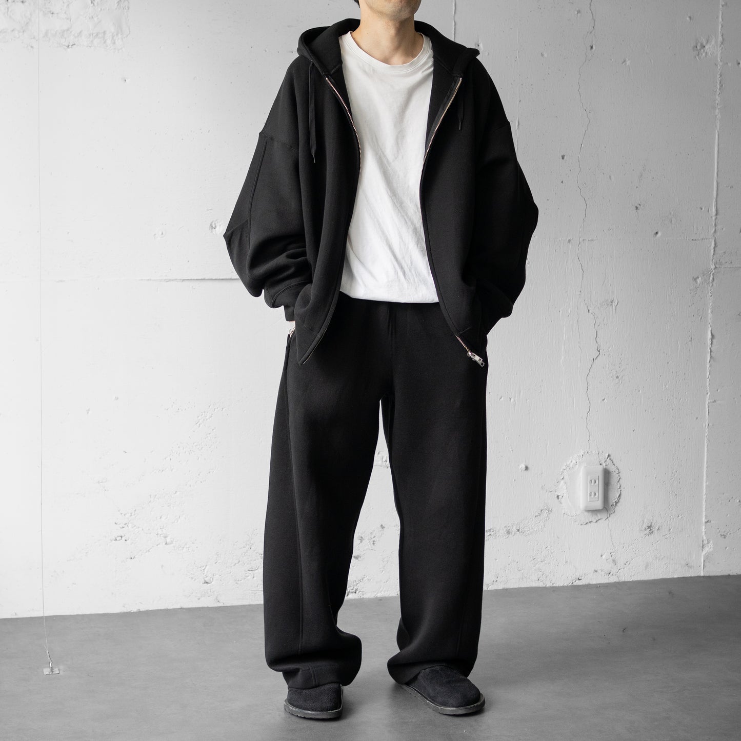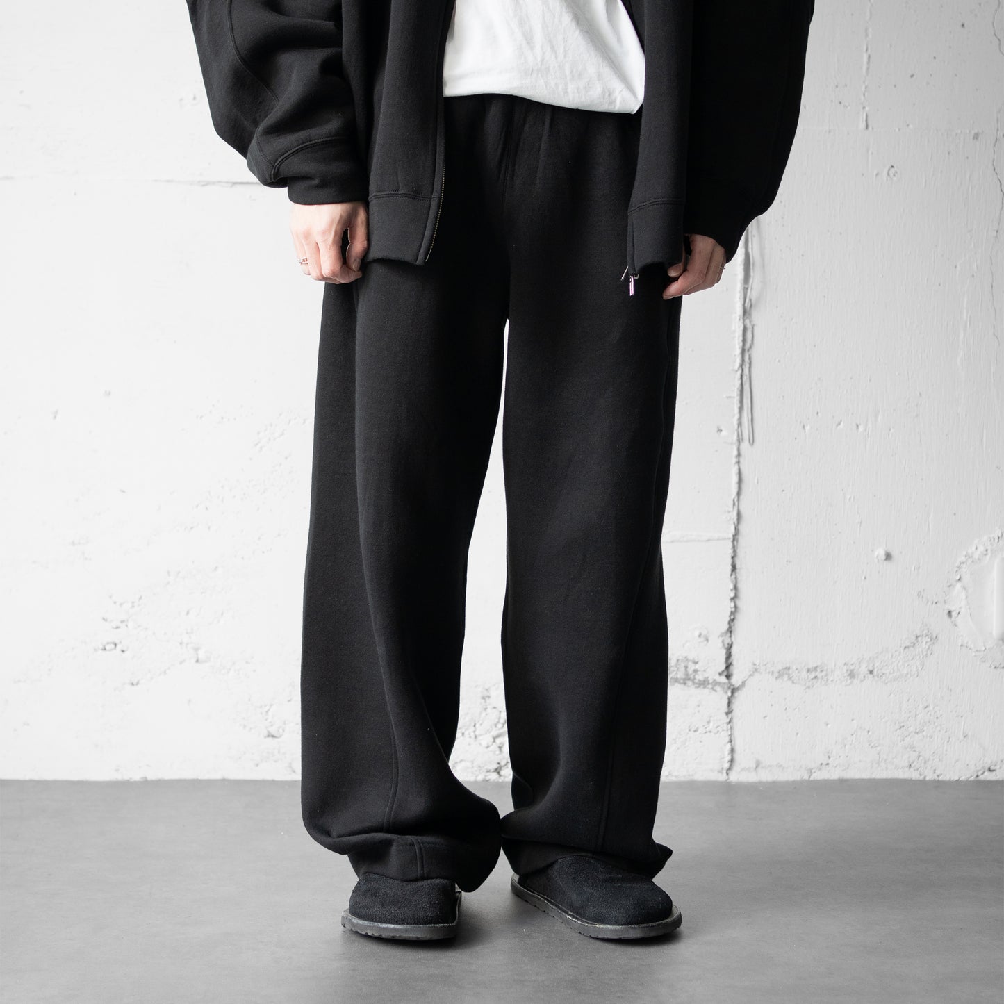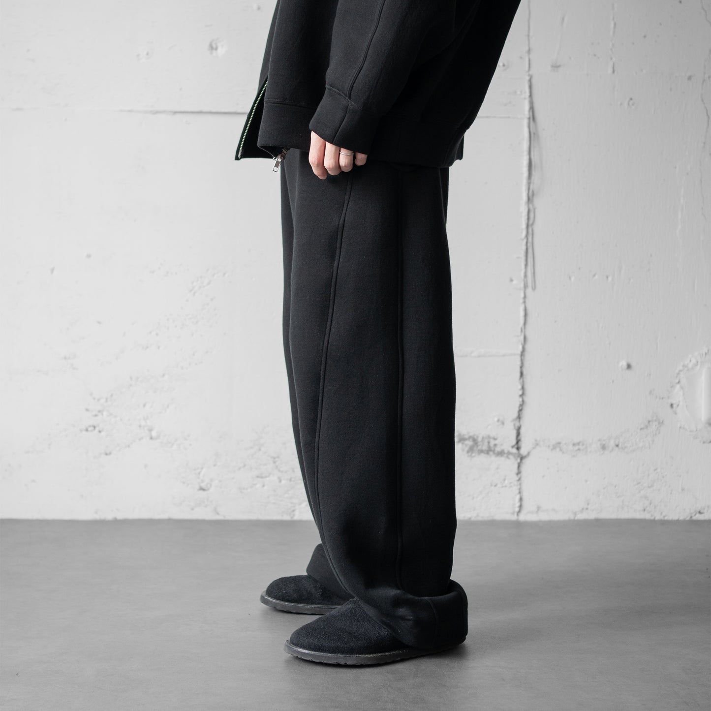 ssstein/ COTTON DOUBLE KNIT TWIST SEAM PANTS "BLACK"