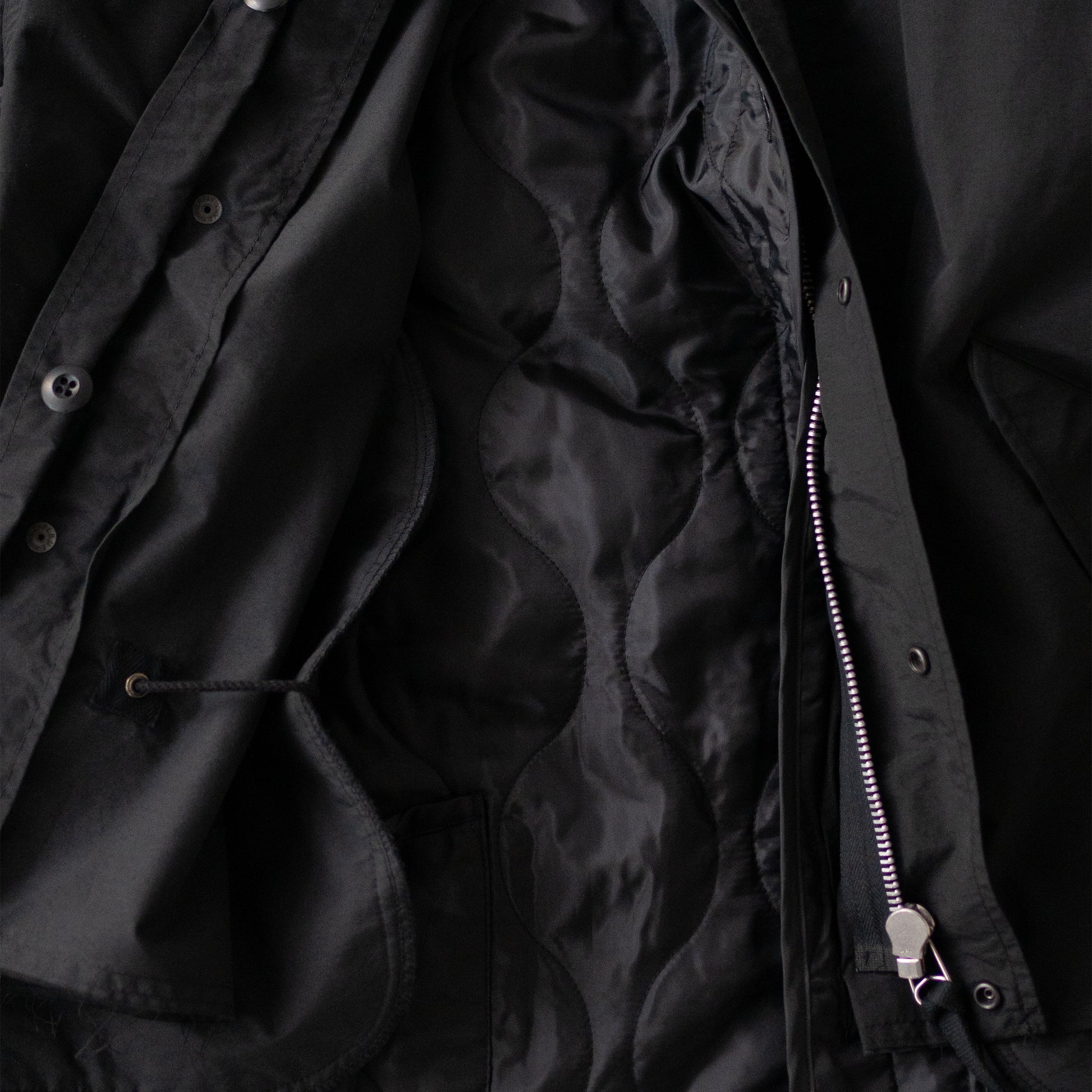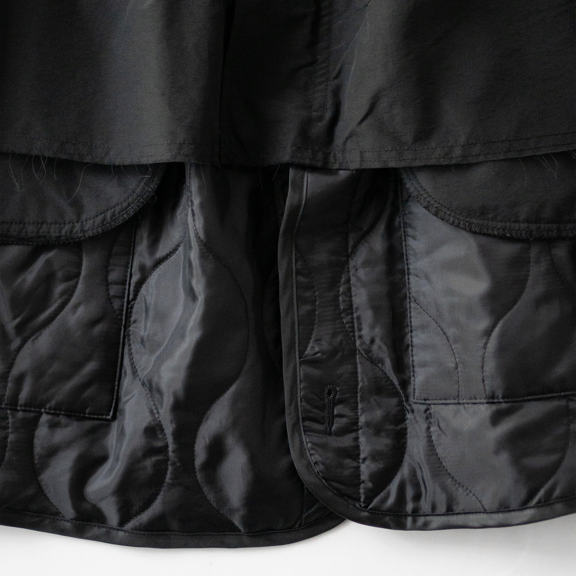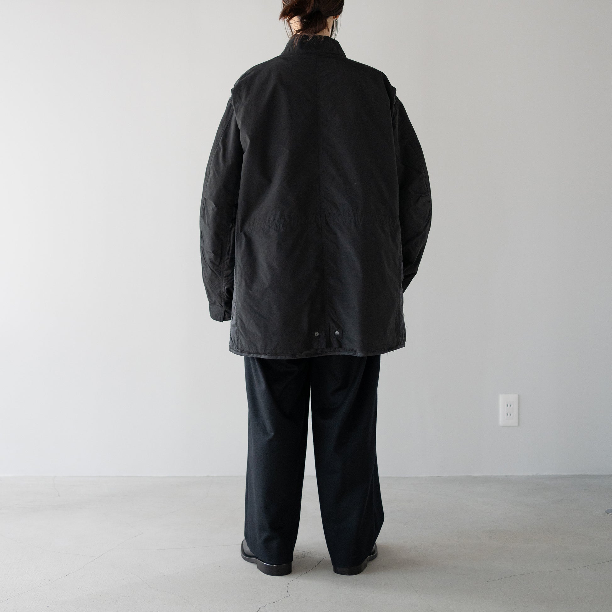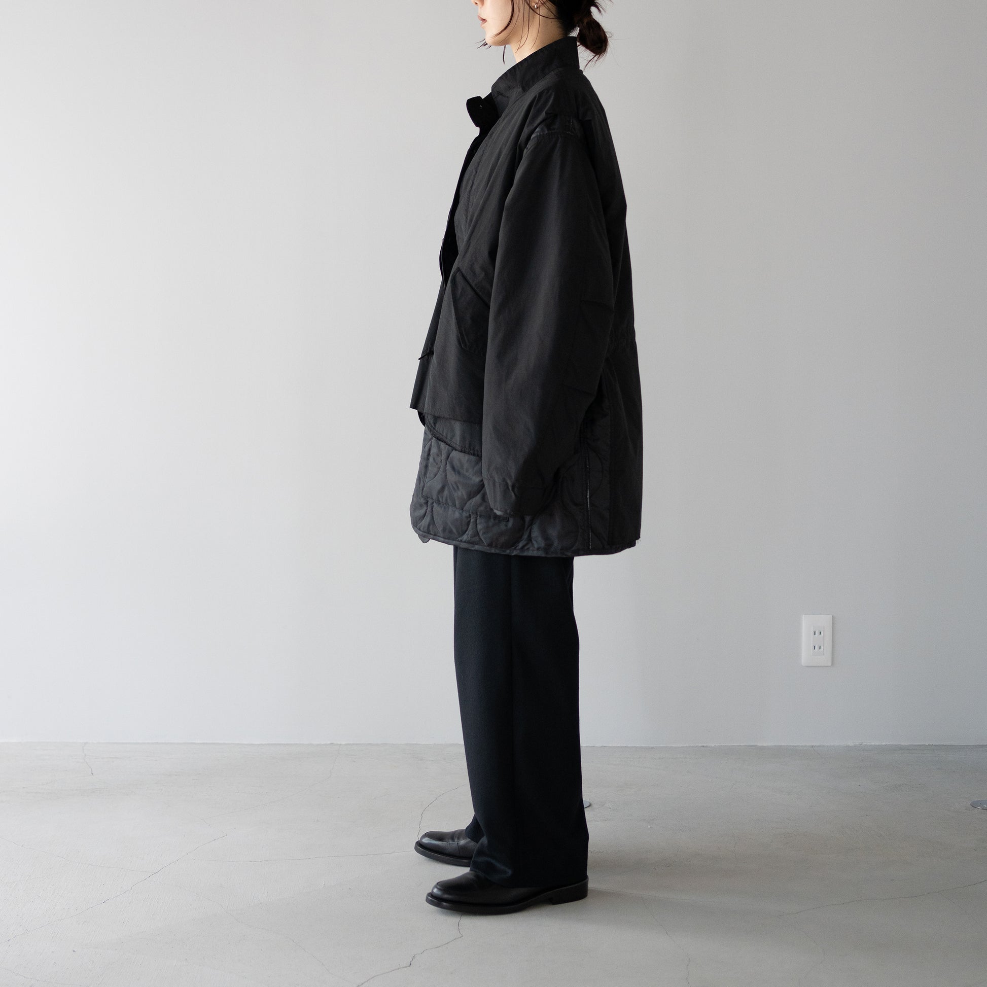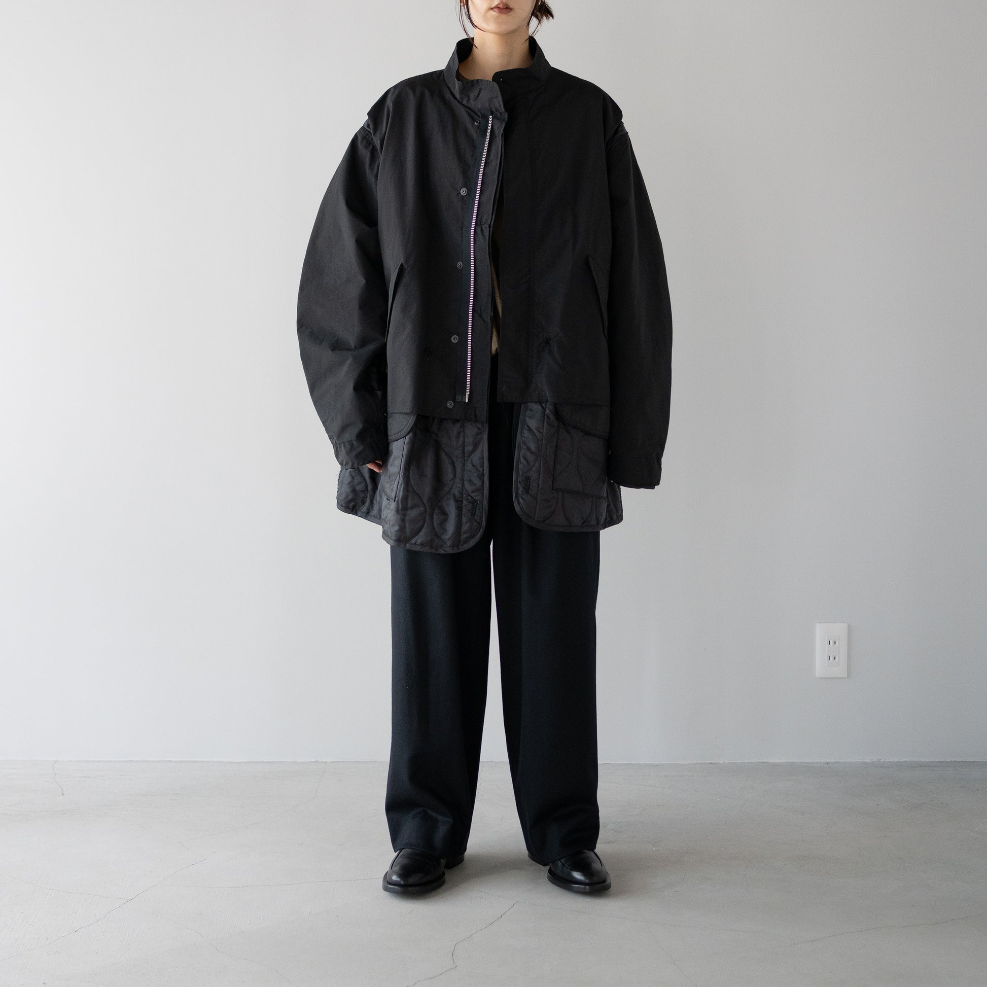 M-65 Fishtail Parkaとキルティングライナーが再構築されたミリタリーブルゾン。 コートの着丈をブルゾン丈にカットし、下からキルティングライナーがのぞくような仕様に。キルティングライナー側のポケットも使用可能。袖も解体し、ライナーと縫い合わせることで違和感のある生地のあまりが生まれます。マン・レイのシュールレアリスムのオブジェのインスピレーションから異なるアイテムの組み合せを構築したデザイン。