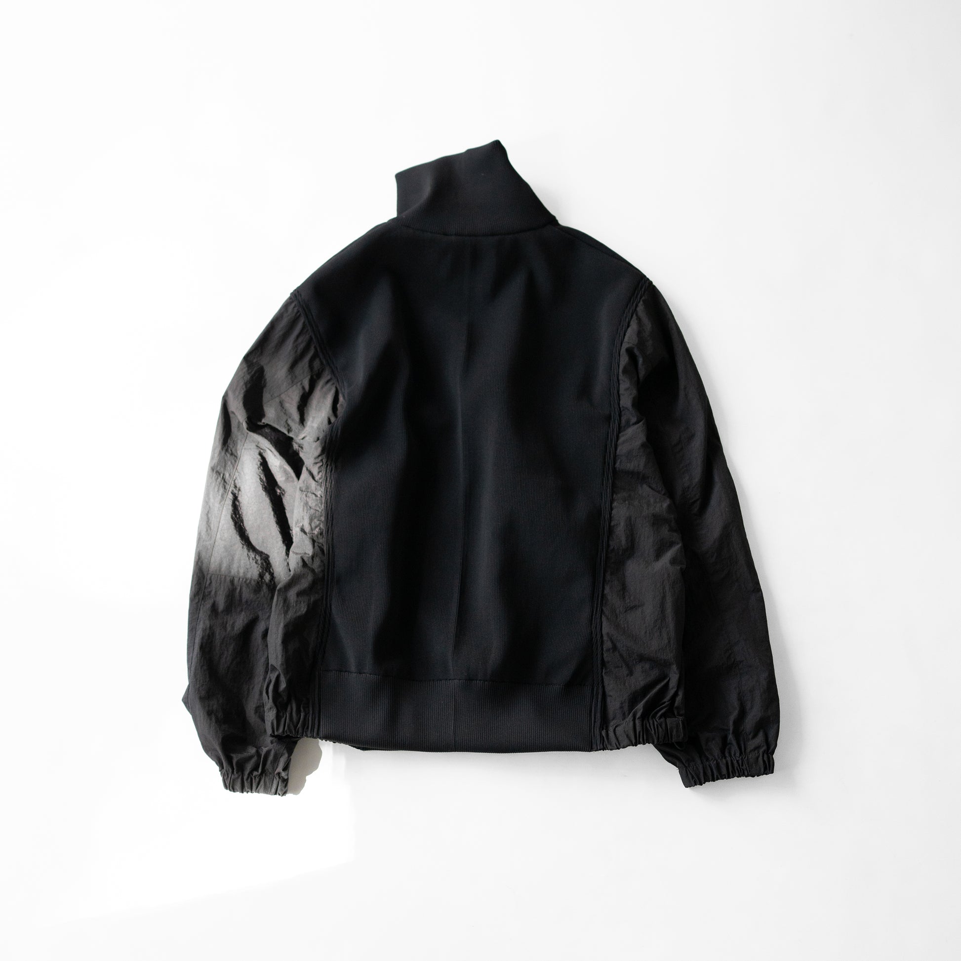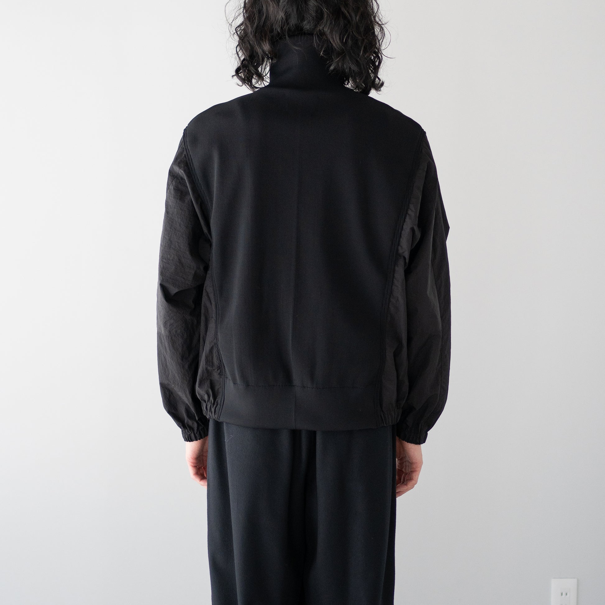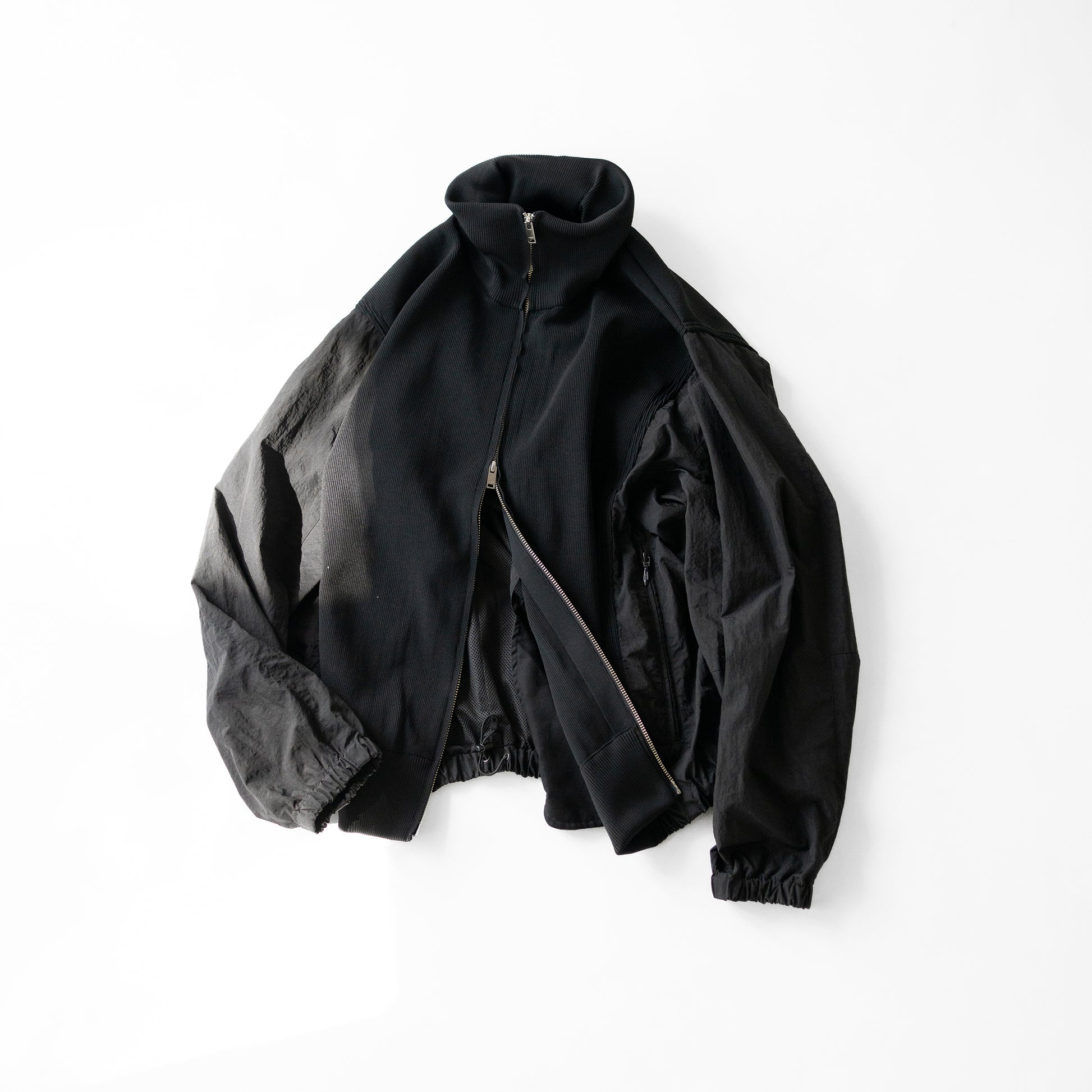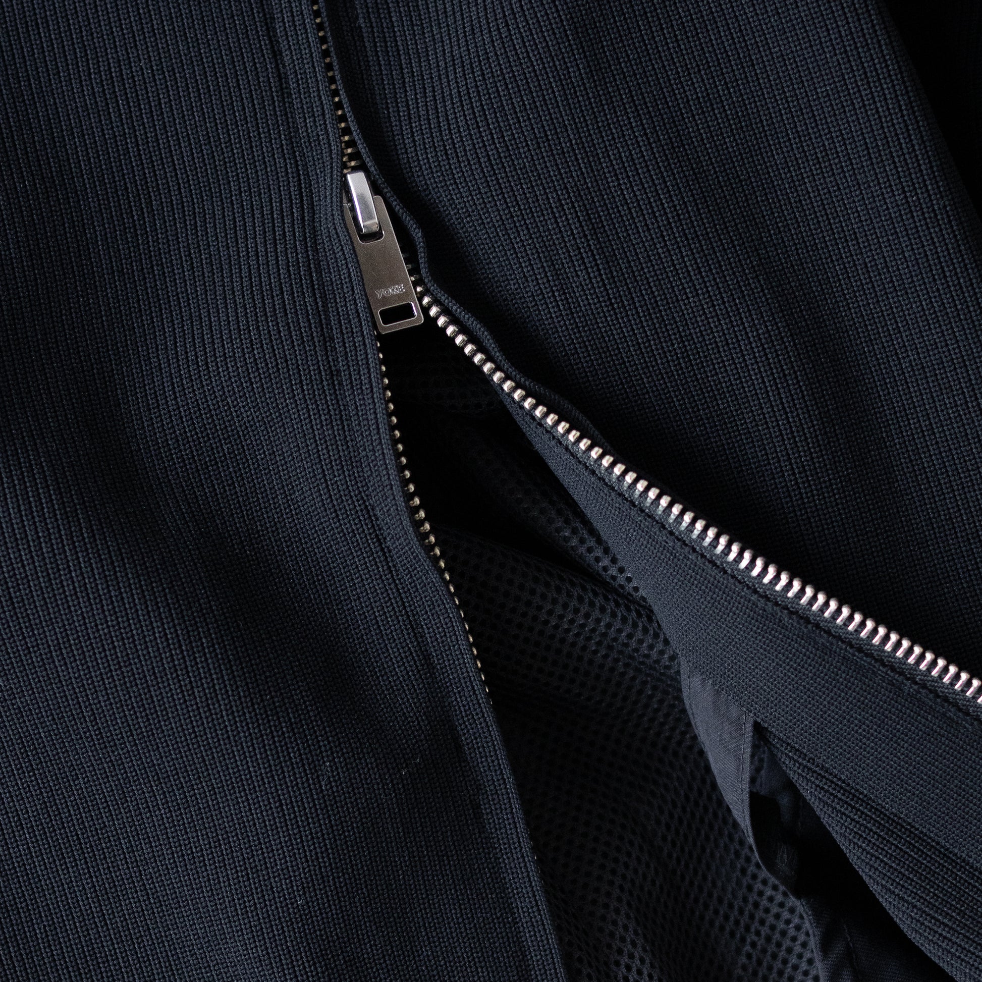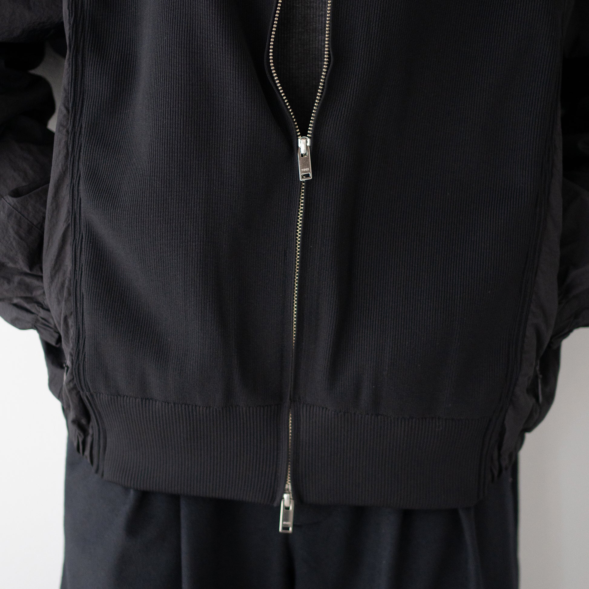 ドライバーズニットとナイロントレーニングブルゾンをドッキングしたアイテム。定番の2つのアイテムを繋ぎ合わせることで生まれる違和感を持たせた ニット分も生地のナイロン部分も撥水加工を施されています。