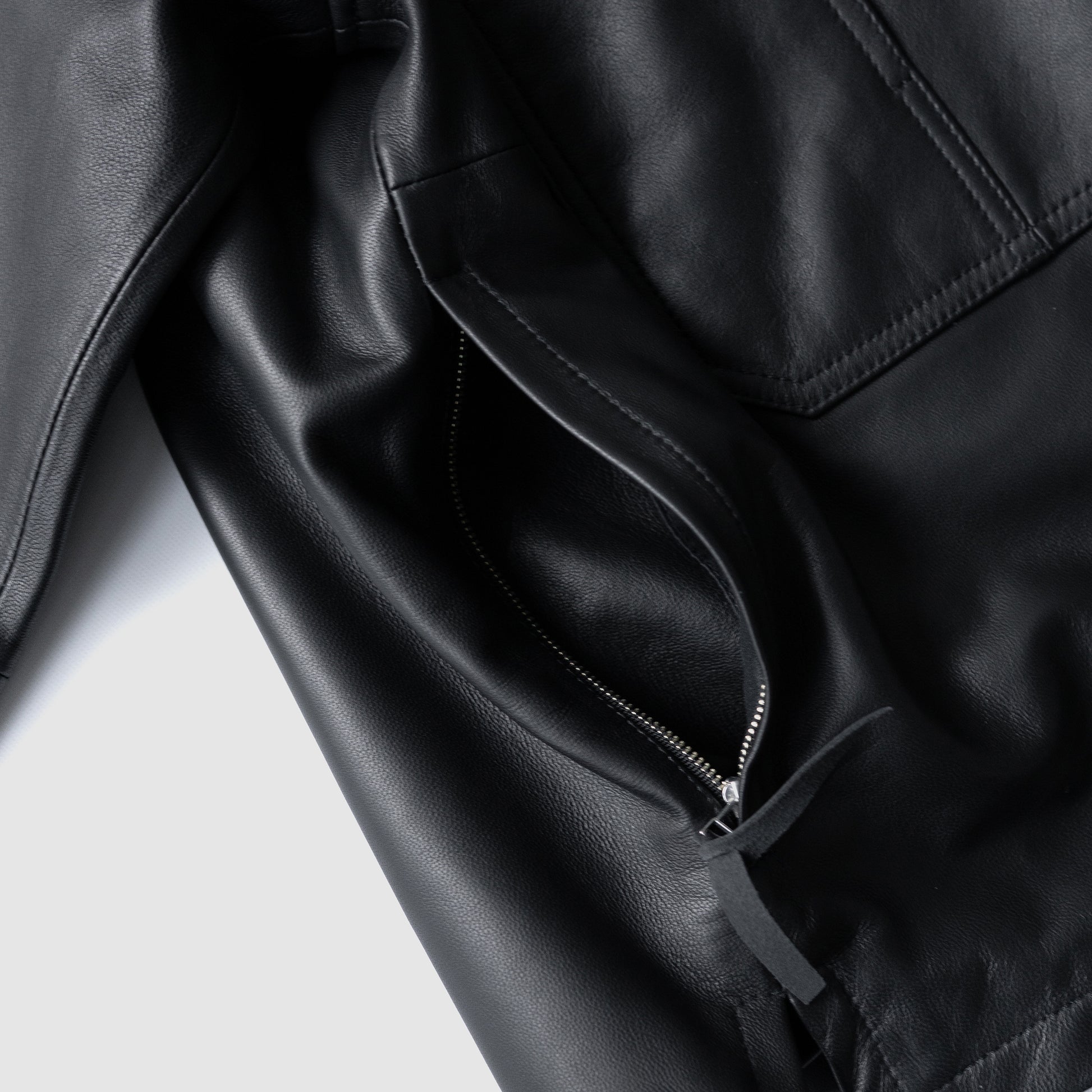 イギリス製シープレザーを厚さわずか0.6mmの薄いレザーを使用しました。この薄さにより、軽量でしなやかな装着感を実現しています。 さらに、レザーの表面にはナッパラン加工を施しています。この特殊な加工により、マットな質感が生まれ、モダンで都会的な雰囲気を演出します。ナッパラン加工は、レザーの光沢感を抑え、素材本来の風合いを引き立てる効果もあります。