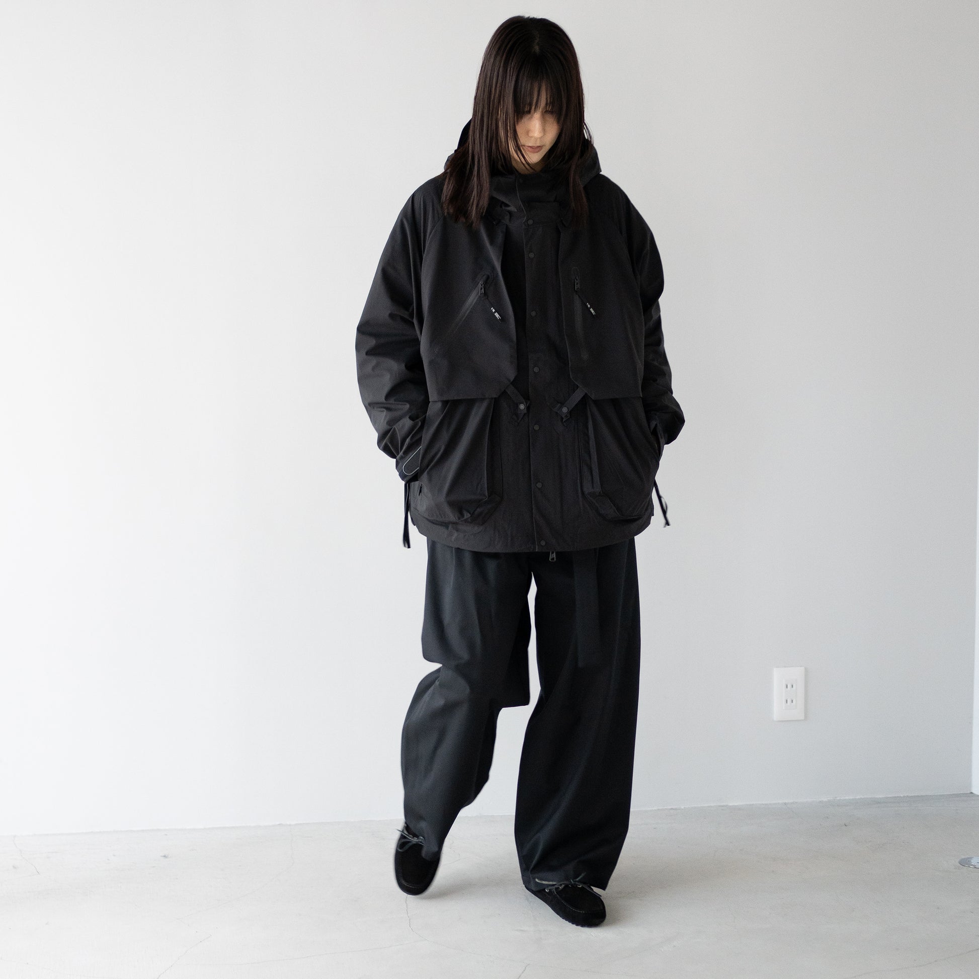 最新鋭の防水透湿素材PERTEX SHIELDを使用したWATERPROOFテクニカルジャケット 。ボックス型のシルエットにドロップショルダーで、ゆったりと着用できるサイズ感。野外アクティビティでも活躍するアウトドアスペック。F/CE.らしいポケットデザインが特徴です。