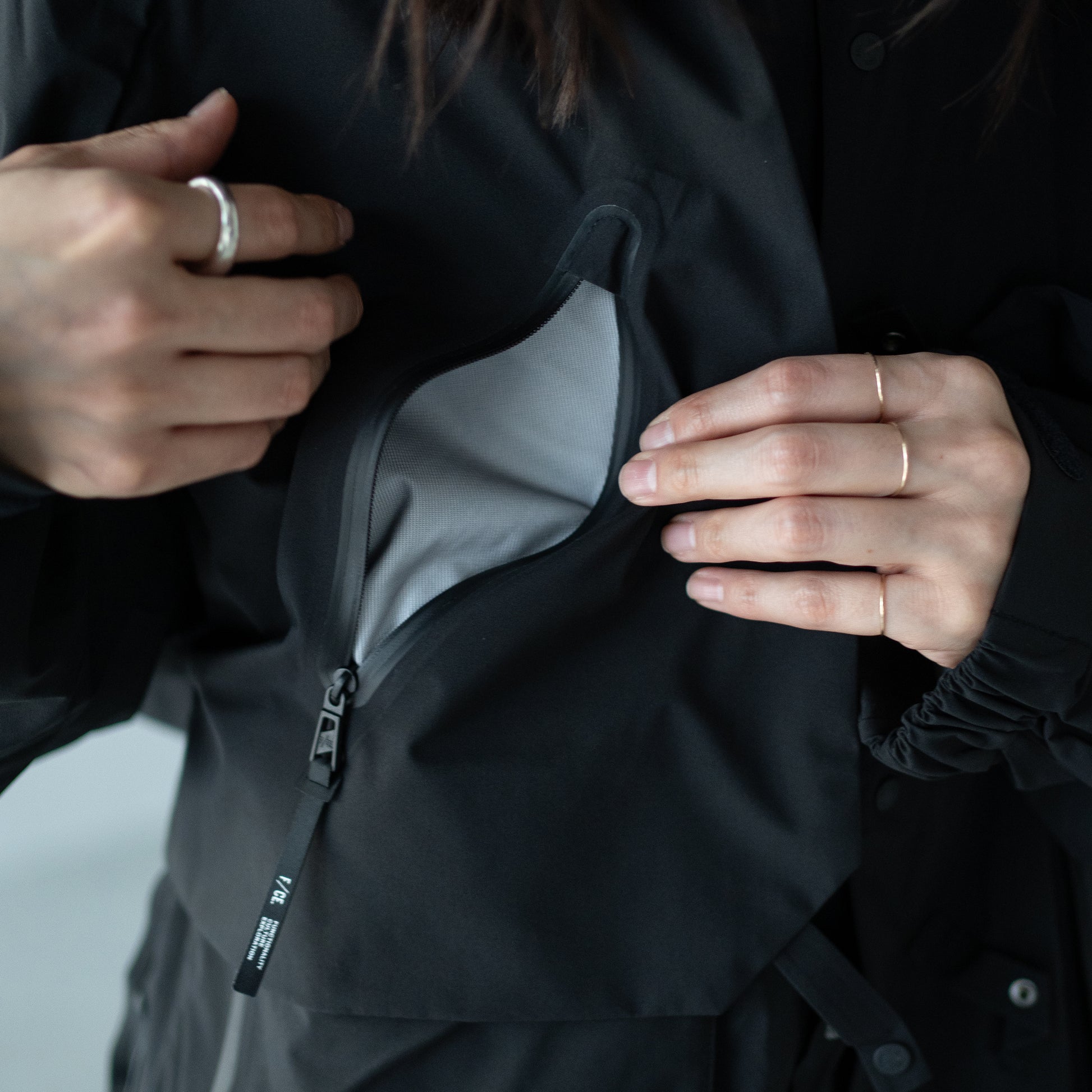 従来のレインジャケットやシェルのように、汗で衣服内が蒸れ、身体が冷えてしまう心配がなく、日本のように高温多湿な気候や運動量の多いシーンにおいても、雨風を効果的に防ぐことが期待されます。