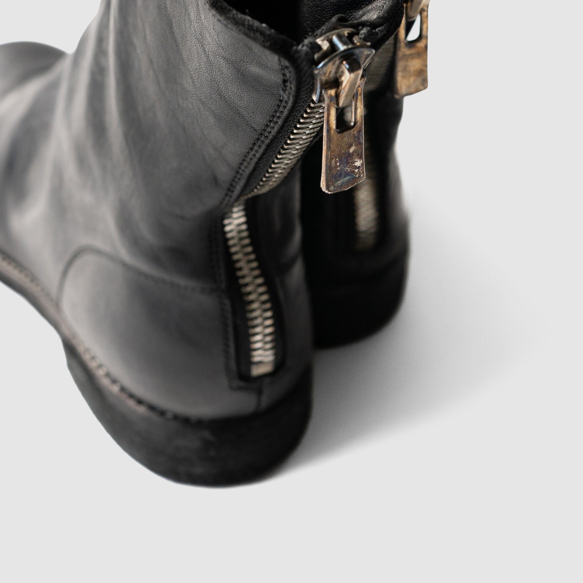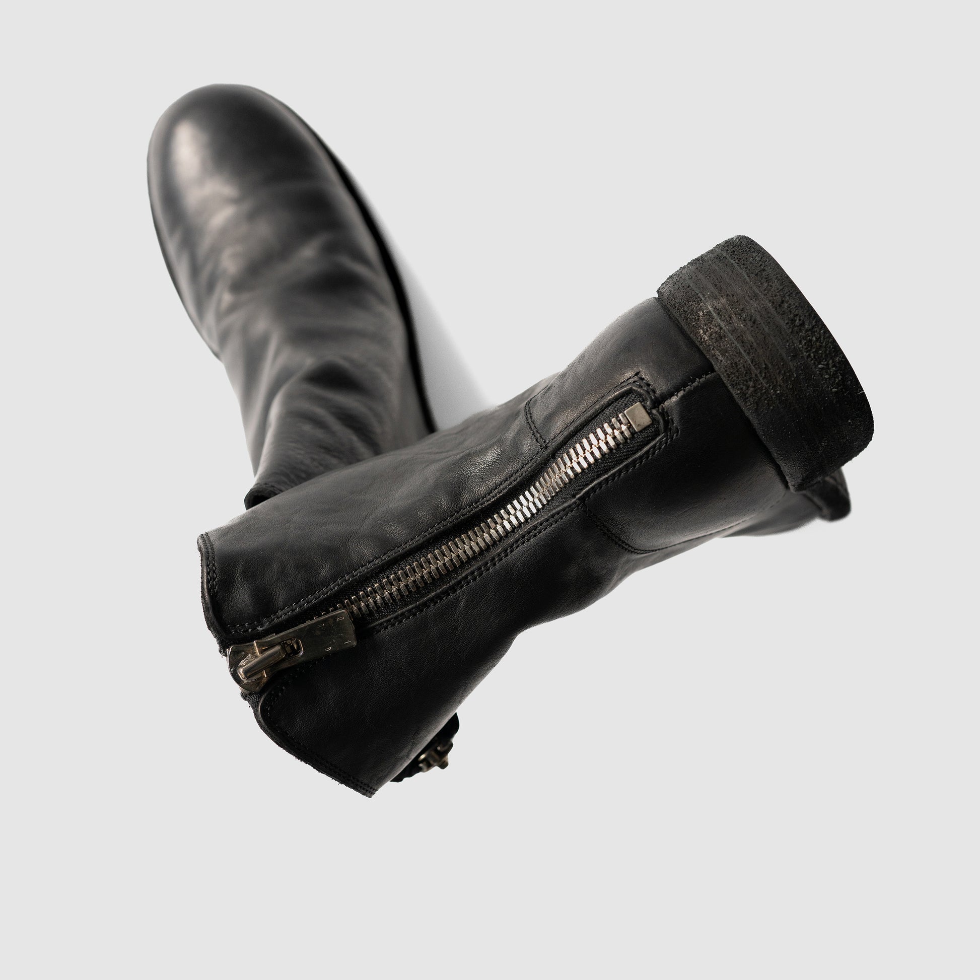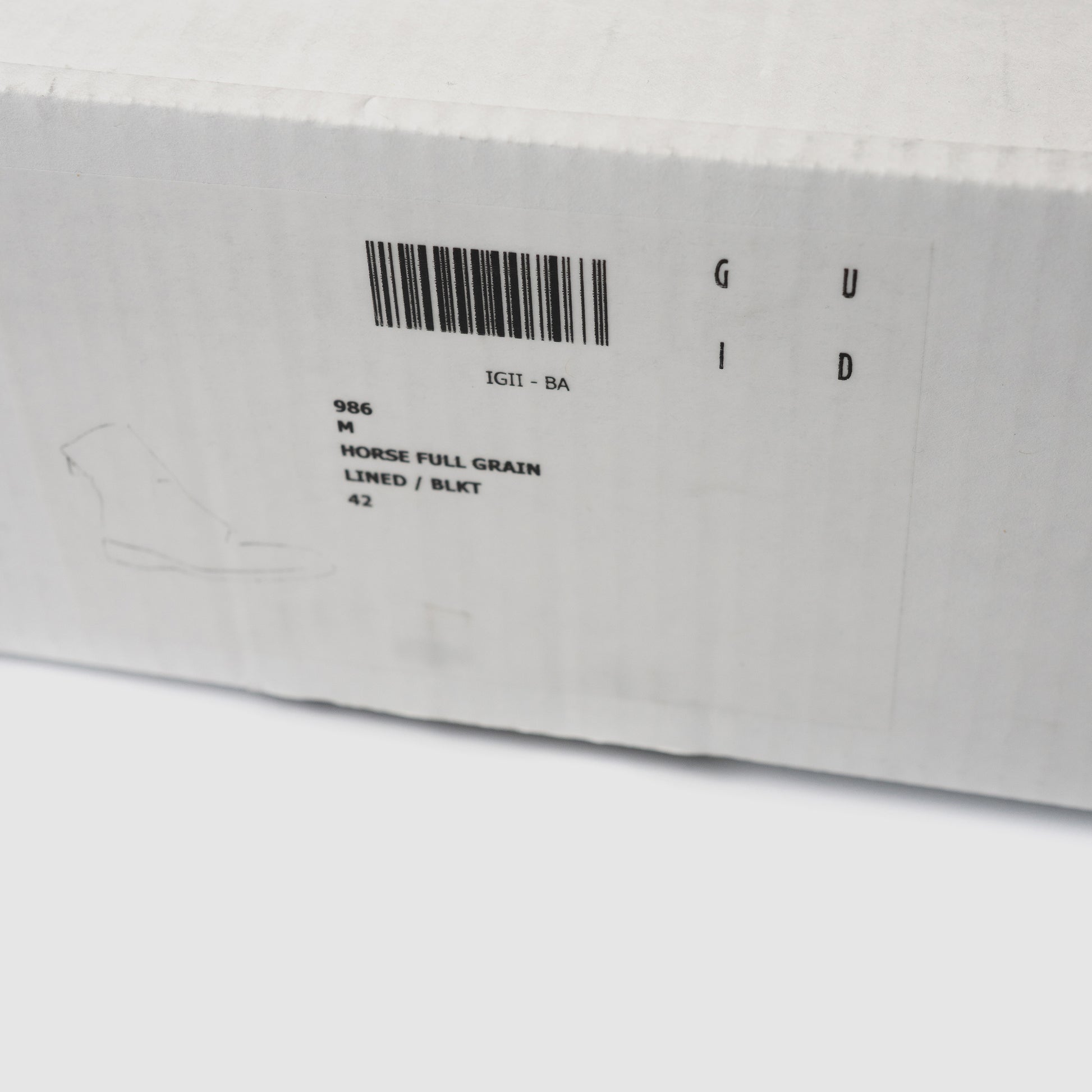 イタリア産のフルグレインホースレザーを使用。 フルグレインレザーは、動物の皮の最も外側の層を研磨したりせずにそのまま使用するため、繊維密度が高く、非常に高い耐久性と通気性を完備。グッドイヤーウェルト製法。タンブラーダイ(ドラム染色)による表面の色ムラが特徴で、一点一点異なる風合い。