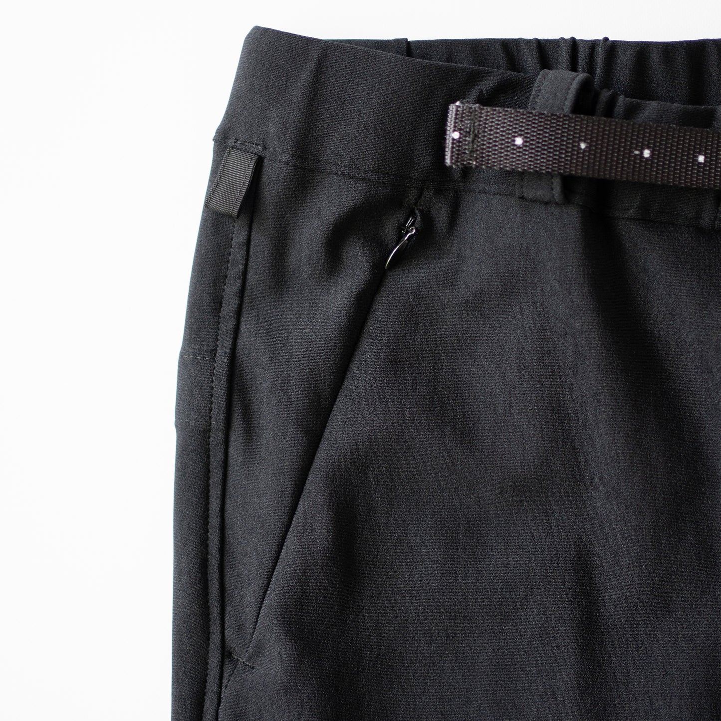 前身頃両脇にコンシールファスナーポケット、内側にモバイルポケットを完備。 袋布には吸水速乾のメッシュ素材を使用しているので、 パンツ内部が蒸れてきた時にはベンチレーションとしても機能します。 後ろ身頃左右に同素材のパッチポケットを配し 左のみオリジナルドットボタン留め。 フロント開きはお馴染みのマグネットボタンによる オートロックシステムを採用。
