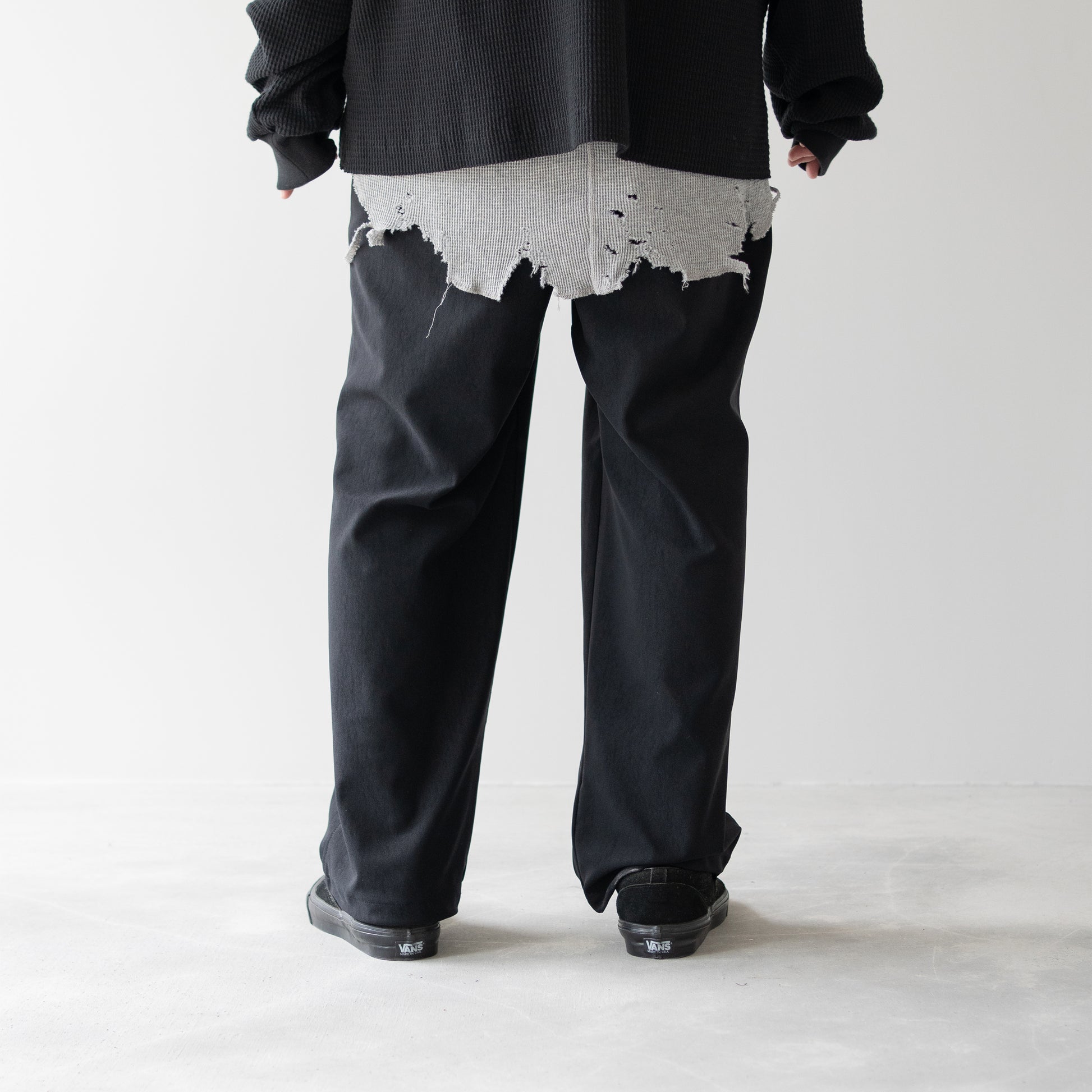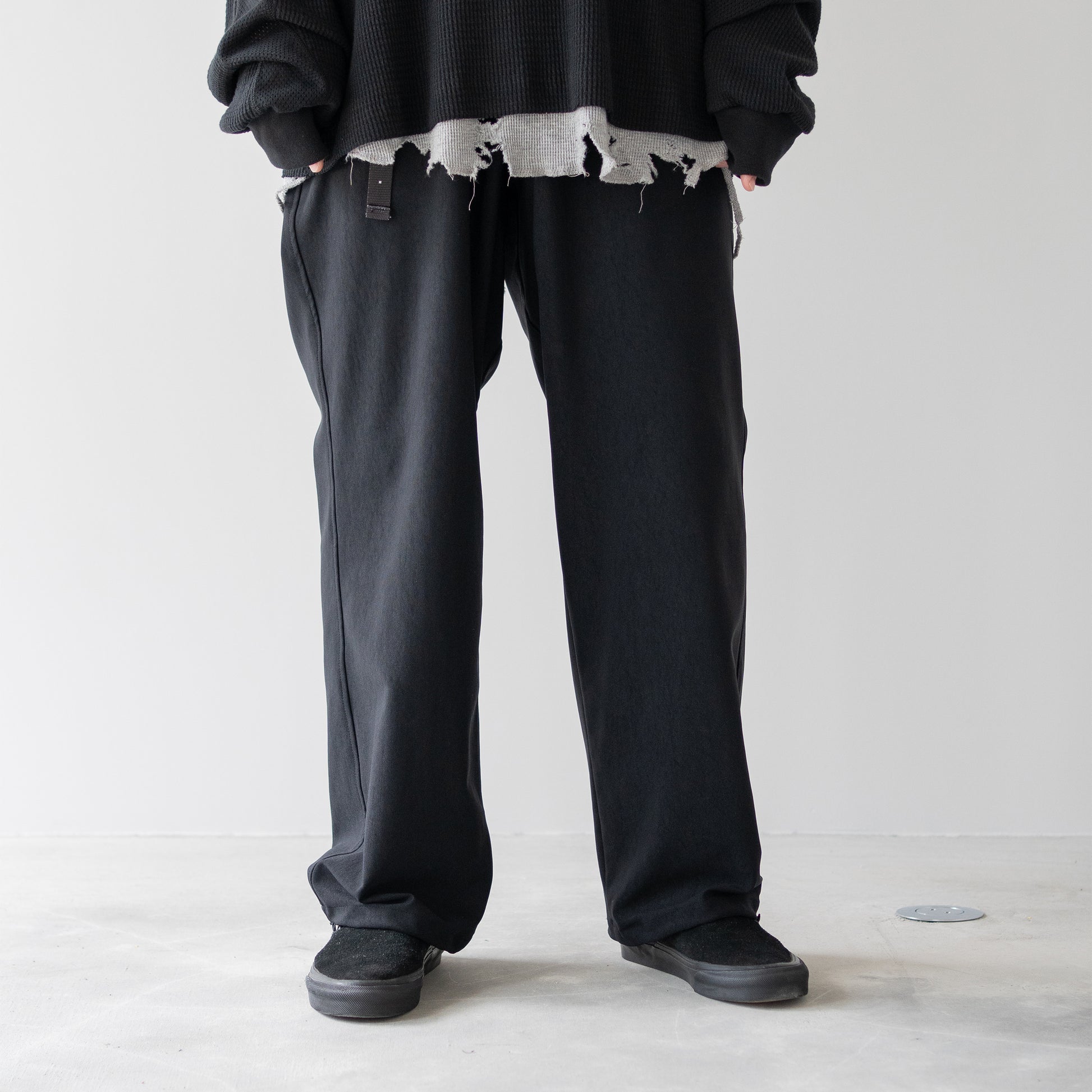 ウエストはオリジナルベルトと平ゴムによるイージーパンツ仕様。