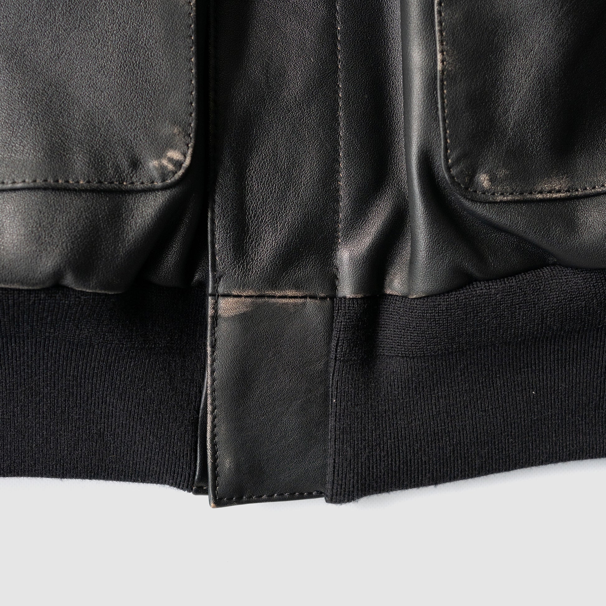 VINTAGEのA-2フライトジャケットをベースに、カウレザーで製作したジップジャケット。