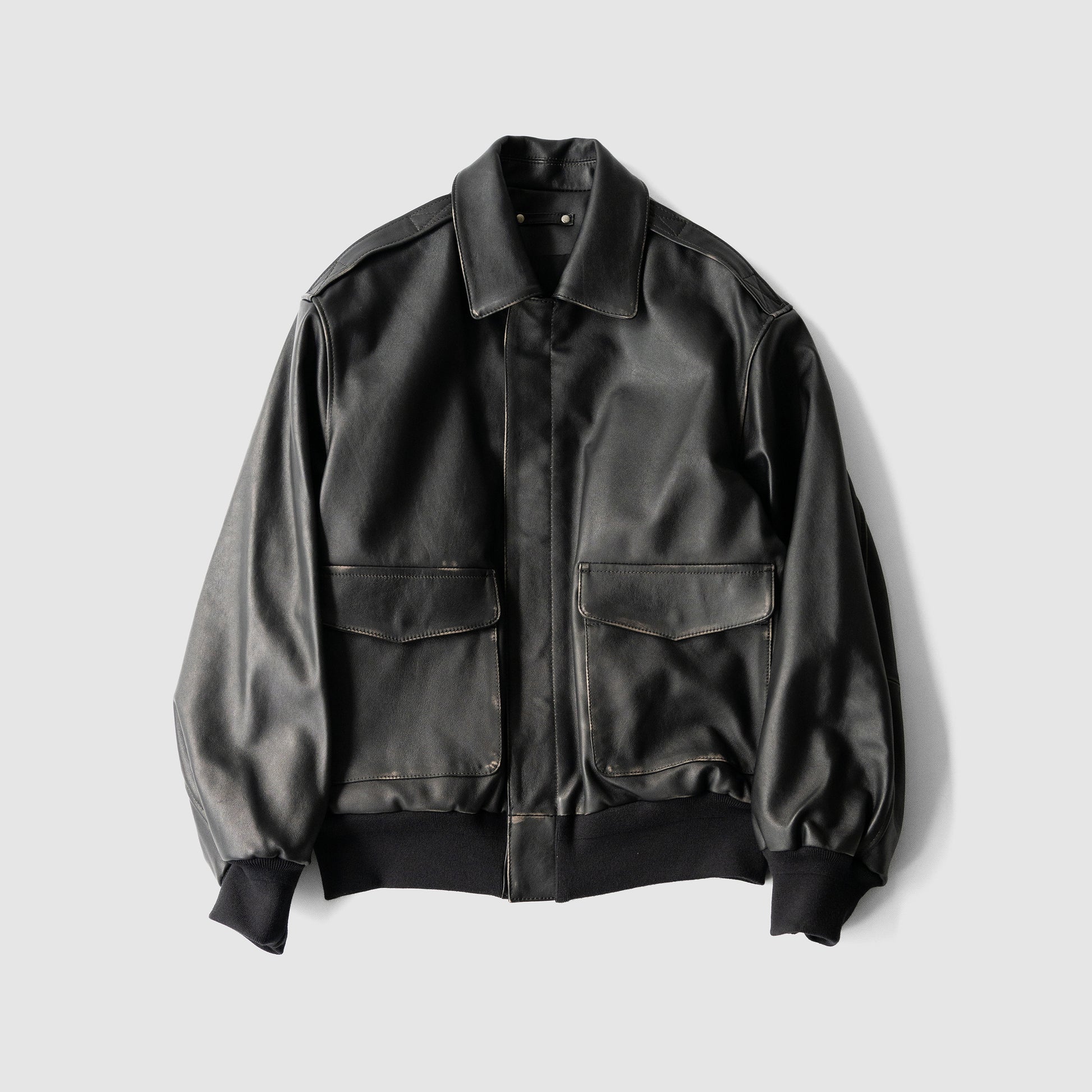 ssstein/ COW LEATHER VINTAGE FLIGHT JACKET "BLACK"