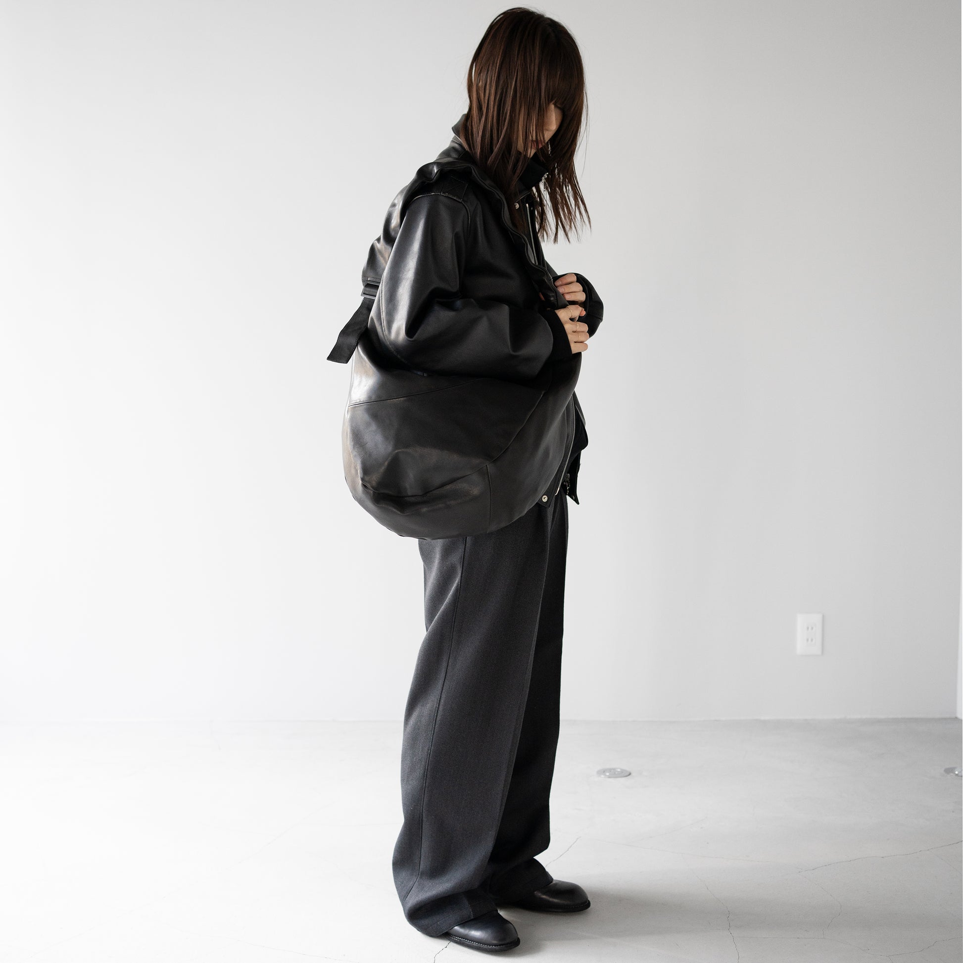 ショルダー内側にレザーベルトを施し、長さを調整することでショルダー部分にギャザーが寄るように設計。