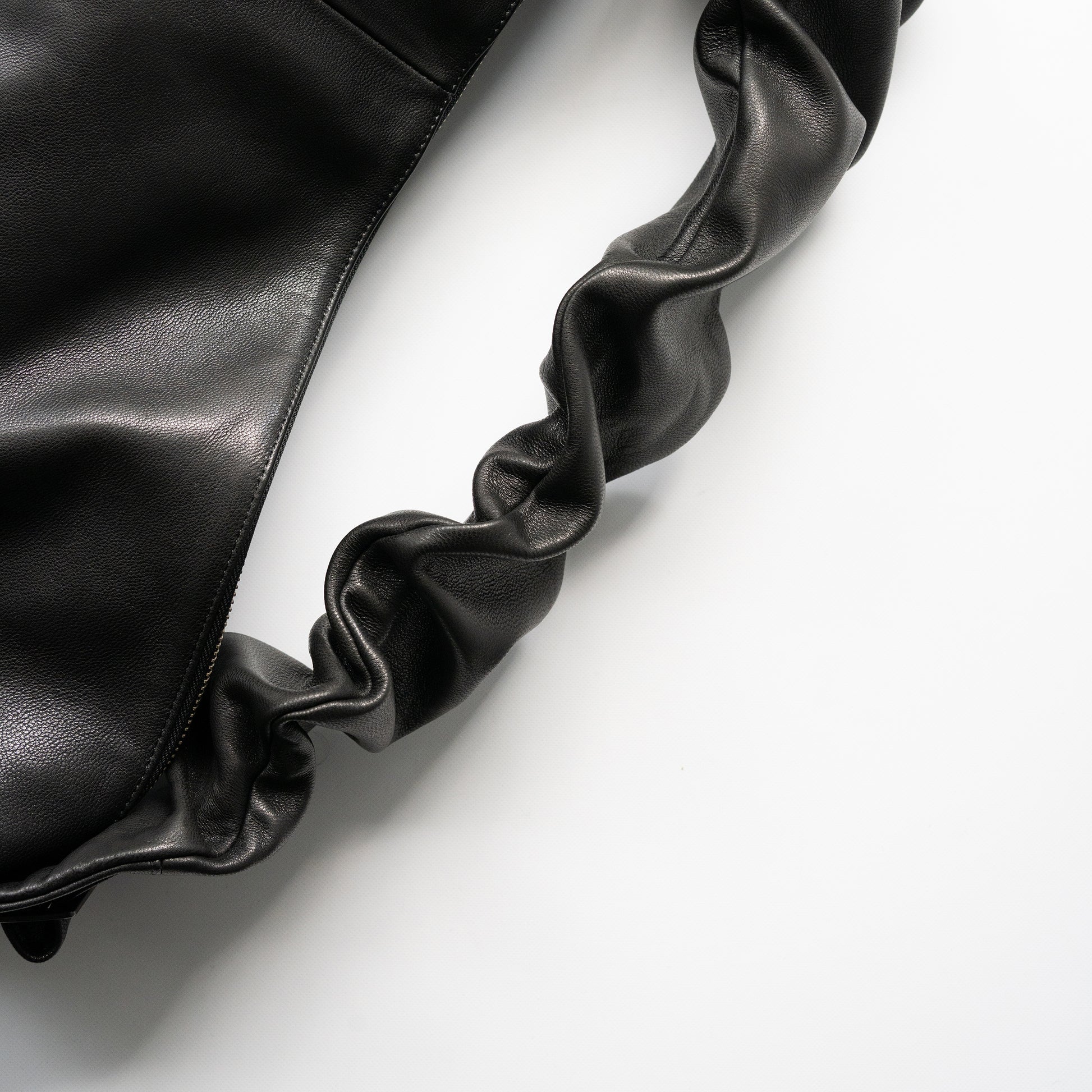 ゴートレザーを使用したツイストレザーショルダーバッグ。