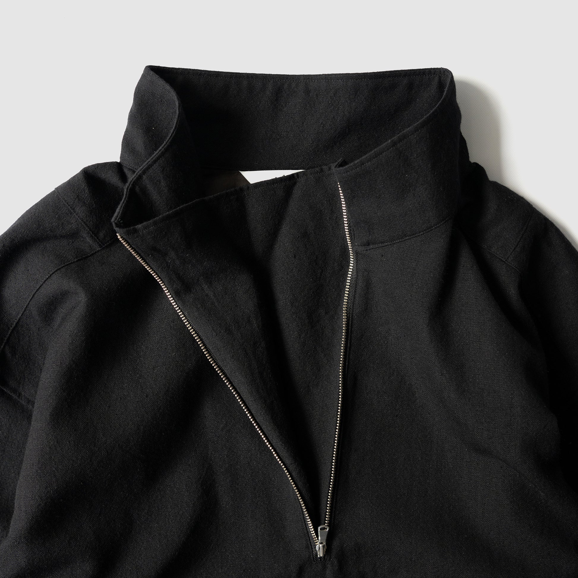 ANCELLM / WOOL HALF ZIP PULL OVER SHIRT "BLACK"
