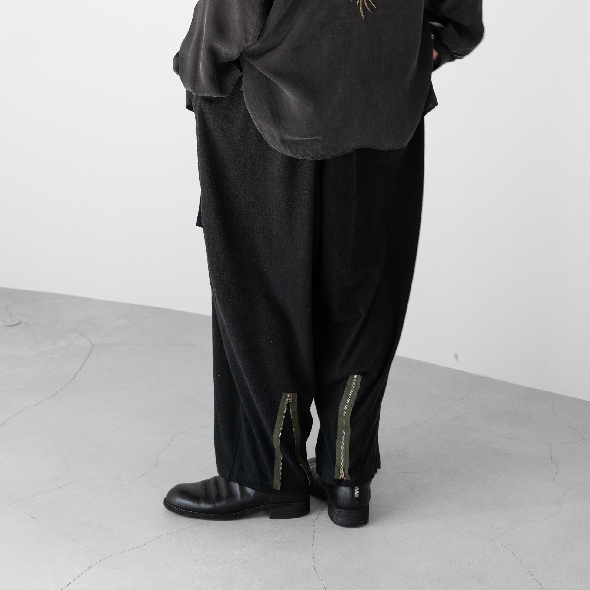 シルクネップの風合いが特徴のサルエルパンツ。