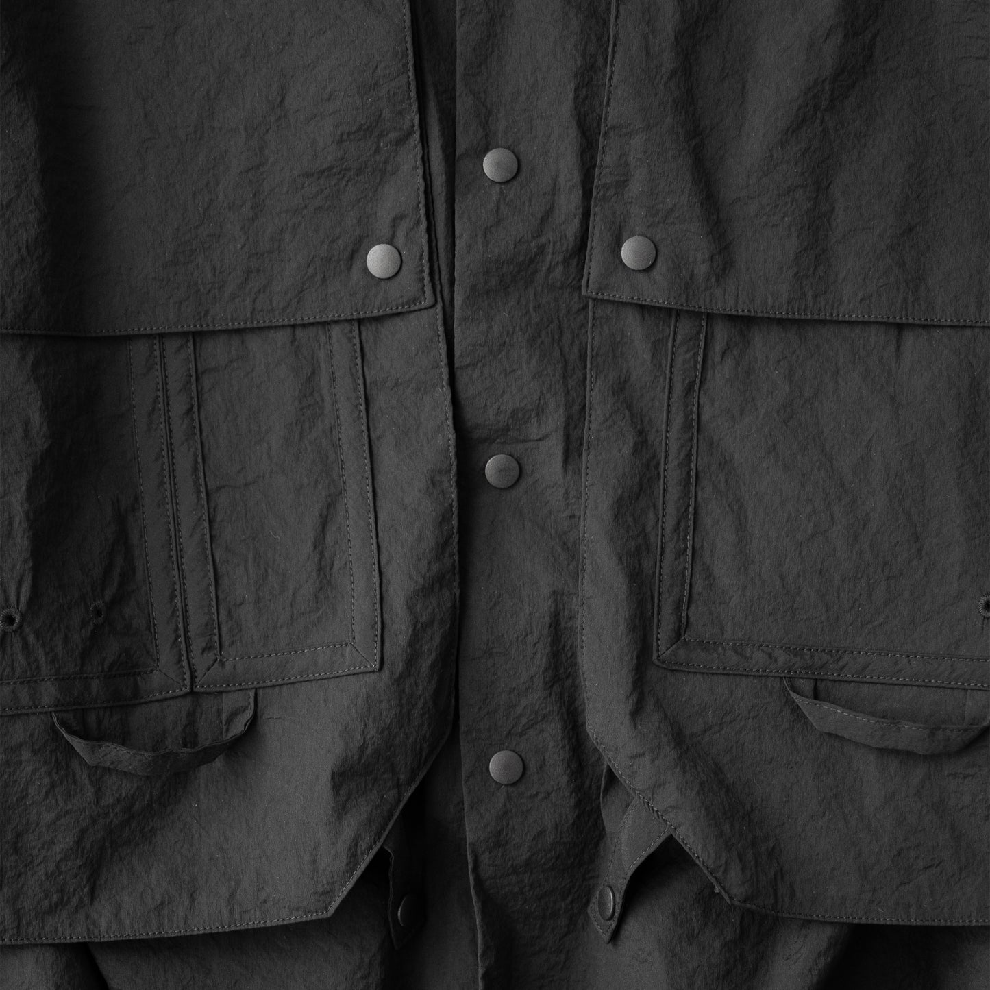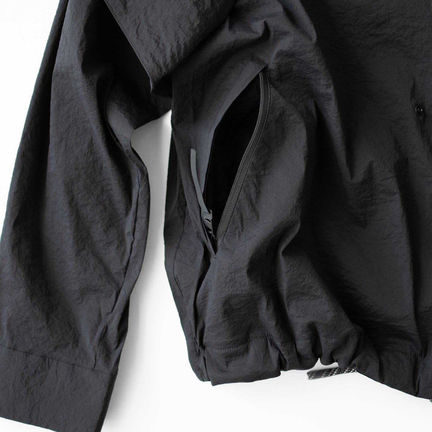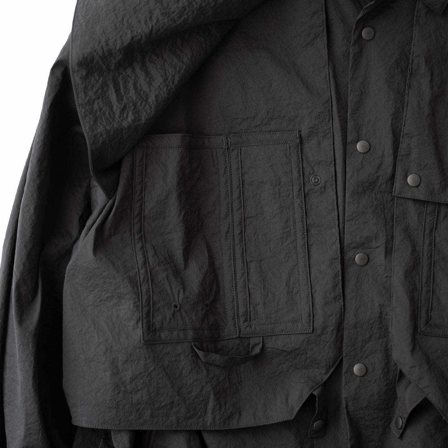 高機能・高通気素材を使用したテックシャツ。ハイパーストレッチで、ややオーバーサイズシルエットで着心地の良いデザインです。 胸の3Dポケットも特徴的です。 ナイロン×ポリウレタンの糸を使用したタフタ素材を使用。 独特なドライタッチとハイストレッチが特徴の製品になります。 また、ナイロン特有のキラつきを最大限に抑え上品な透け感がある点も特徴で、モダンな印象に仕上がっています。