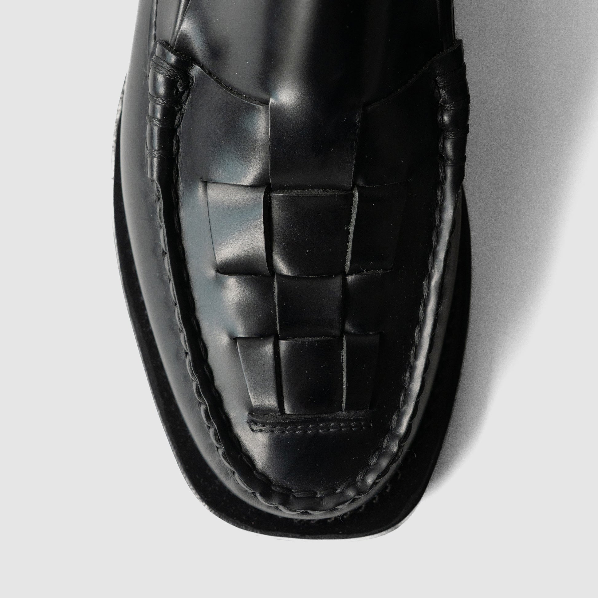 スペイン産ストラクチャーカーフレザーを使用した編み込みディテールのスリップオンローファー。アウトソールはアッパーに縫い付けられており、柔軟性と耐久性を高めています。スペイン国内の熟練の職人による伝統的なモカシン製法で手縫いされています。