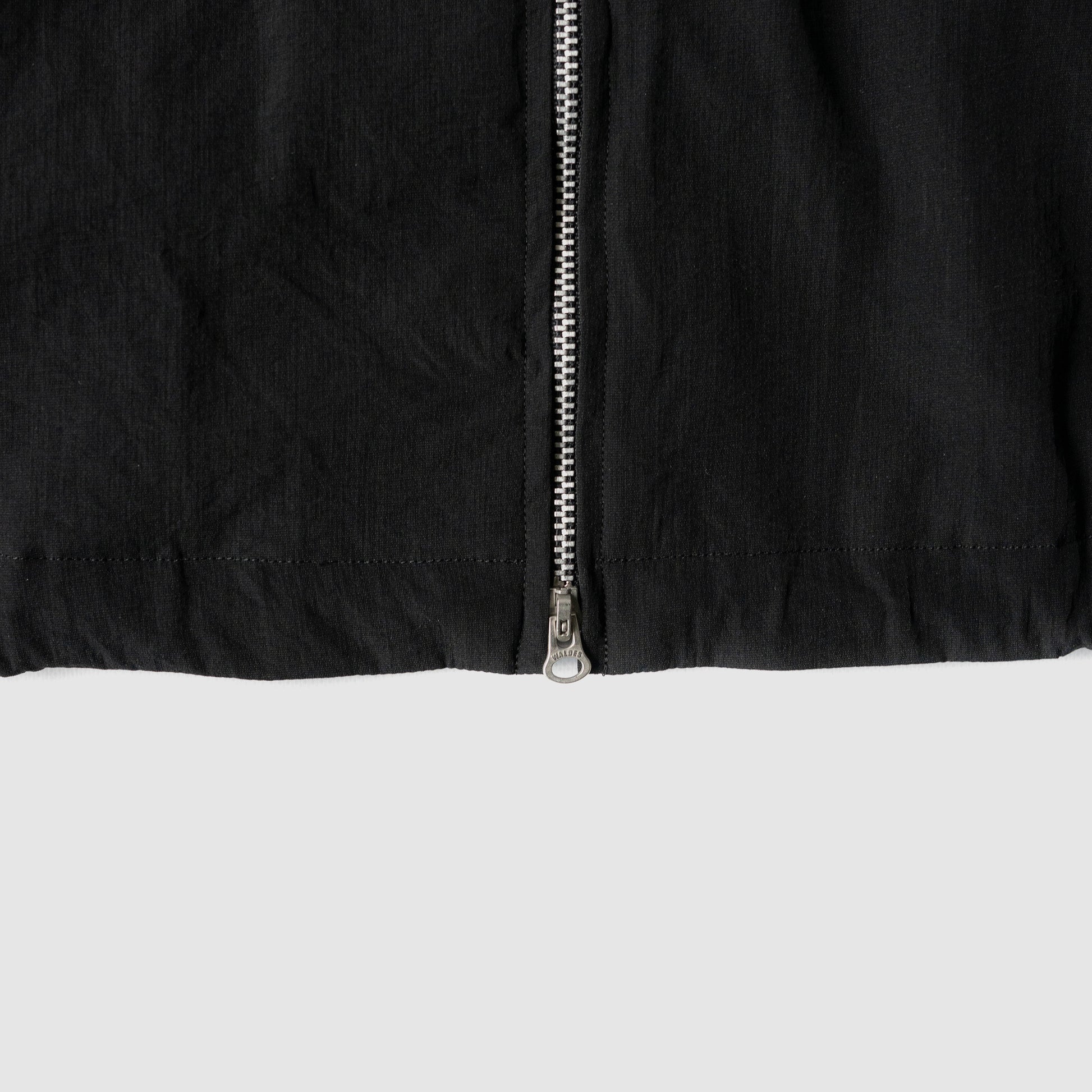 新規開発されたオリジナルの中肉素材を使用したブルゾンです。樹皮のような立体感のある表情が特徴で、涼しさ、軽さ、撥水、速乾、ストレッチといった高機能を備えながらも、一番の魅力はそのカジュアルな風合いにあります。スポーツウェアとは一線を画す、普段使いに馴染む機能服として設計されました。スタンドカラーとゆったりとしたシルエットが特徴です。オリジナルの引手とメタルボタンが配されています。