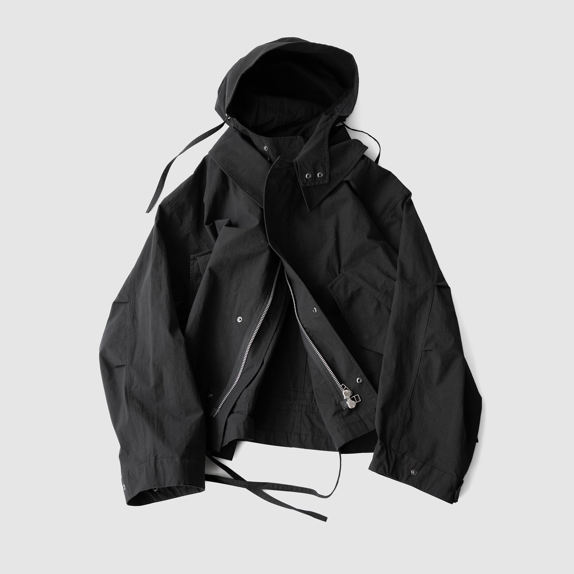 撥水加工を施したコットン×リネンを使用した、オーバーサイズの新型クロップドパーカー。