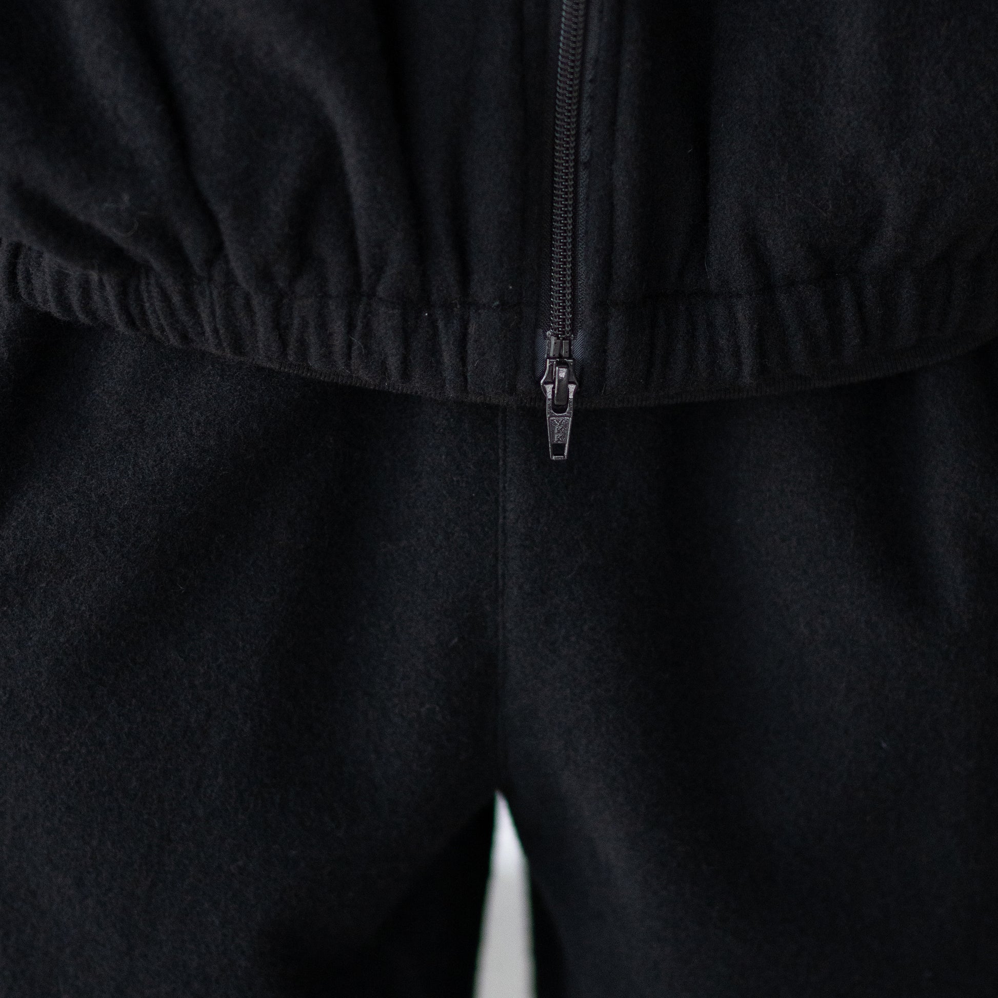 カシミヤの美しい表情と、ウール特有の膨らみ、弾力性を備えた暖かく優しい風合いが特徴のウールカシミヤフリースで製作したイージートラウザーズ。