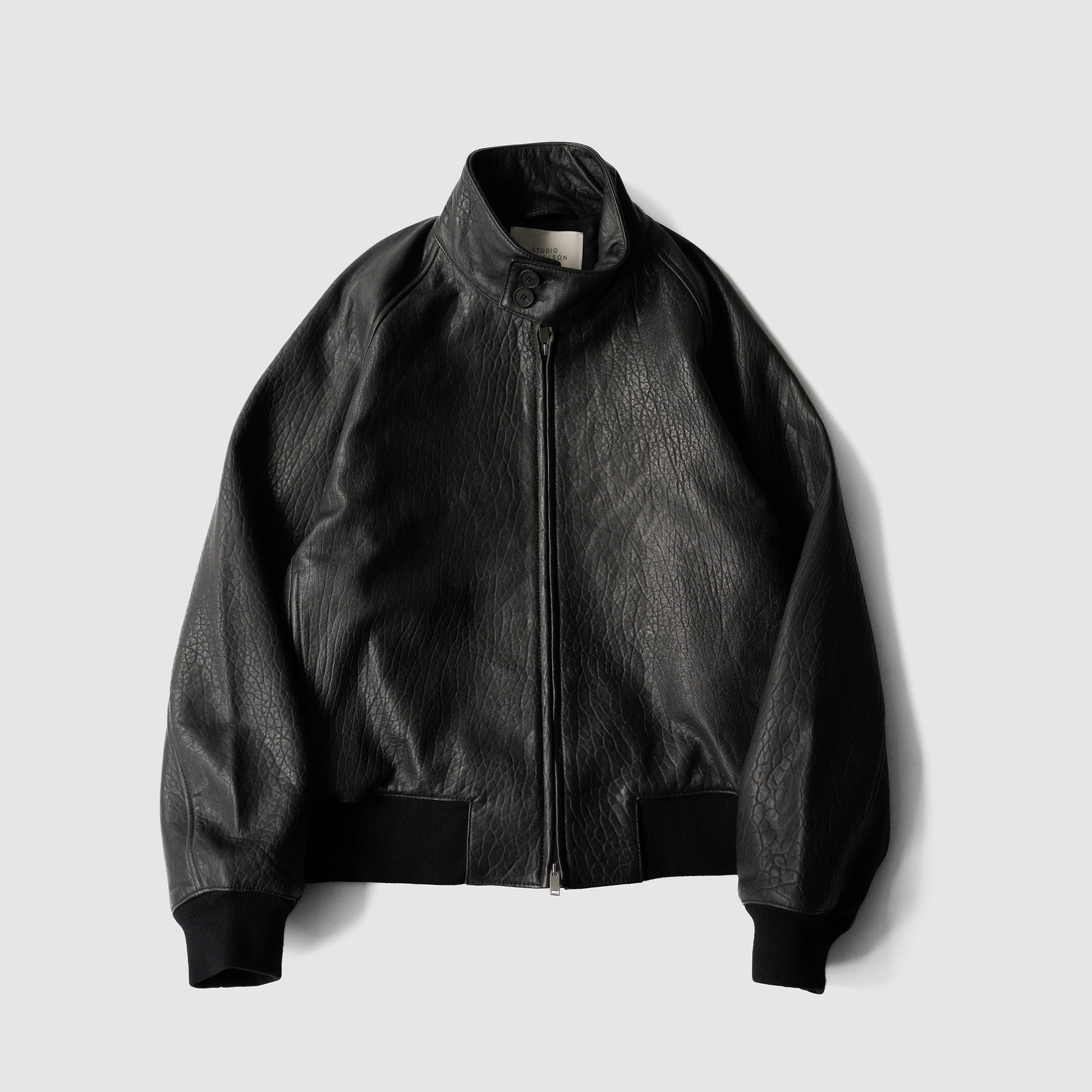 クラシックなハリントンジャケットをアップデートし、しっとりと滑らかなシープスキンレザーを使ったレザージャケット。十分な重みと奥行のある豊かな肌触りを備え、肌に吸い付くような質感が特徴的。クラシックな2ボタン仕様のスタンドカラー、ダブルジップ、エラステック仕様の裾を備え、機能性と洗練を兼ね備えた仕上がり。