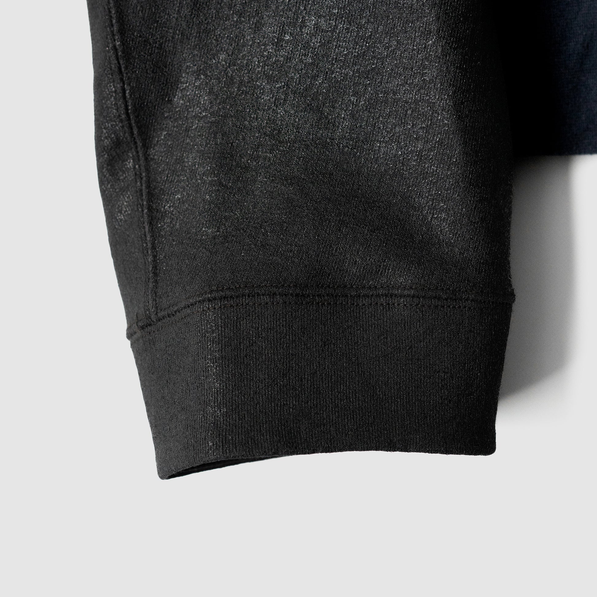 全面にレザーと見紛うような特殊なクラック加工を施した裏毛ZIPスウェット。
