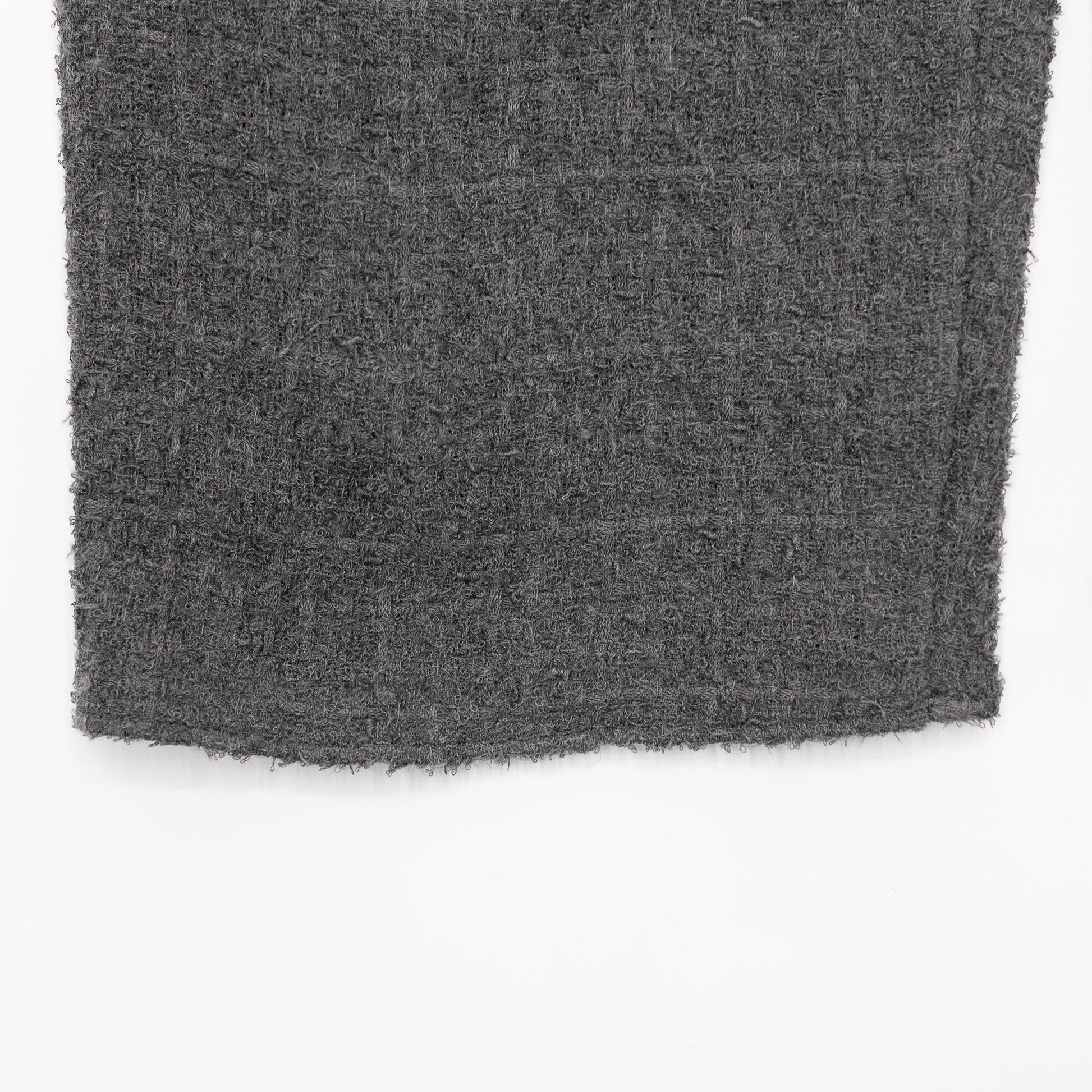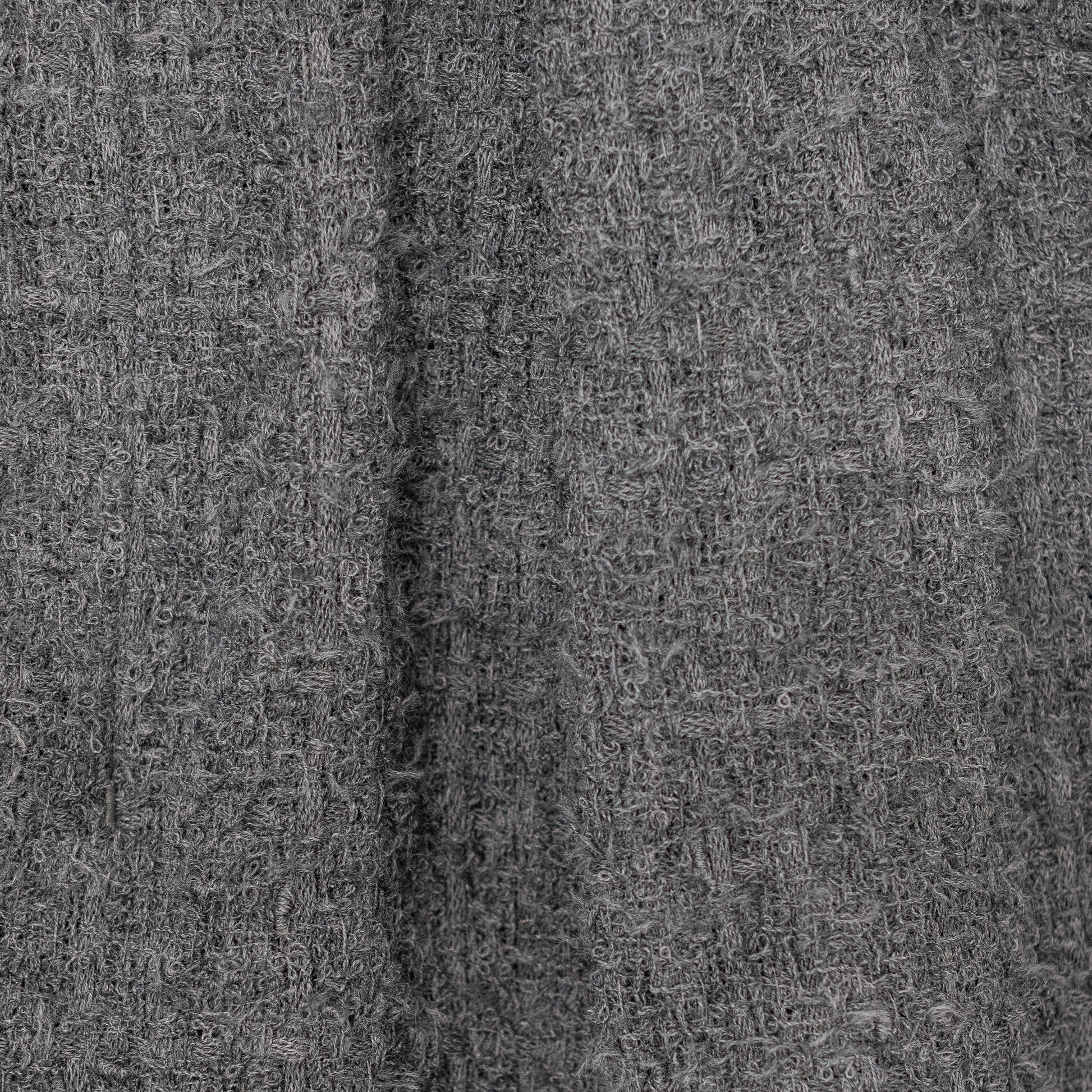 世の中に存在するツイードの大半は紡毛という太い糸で織られております。 分かりやすい例ですと、ハリスツイードが紡毛になります。 自分にとって紡毛ツイードは肌触りがあまり得意ではないのと、見た目がクラシックすぎて、着こなしによってはややおじさん臭くなってしまうことが悩みでした。 相反するツイードで有名な素材はシャネルツイードです。 シャネルツイードは風合いも良く、素材の特性やその表面の複雑性にとても惹かれるのですが、僕にはフェミニンすぎて着れません。
