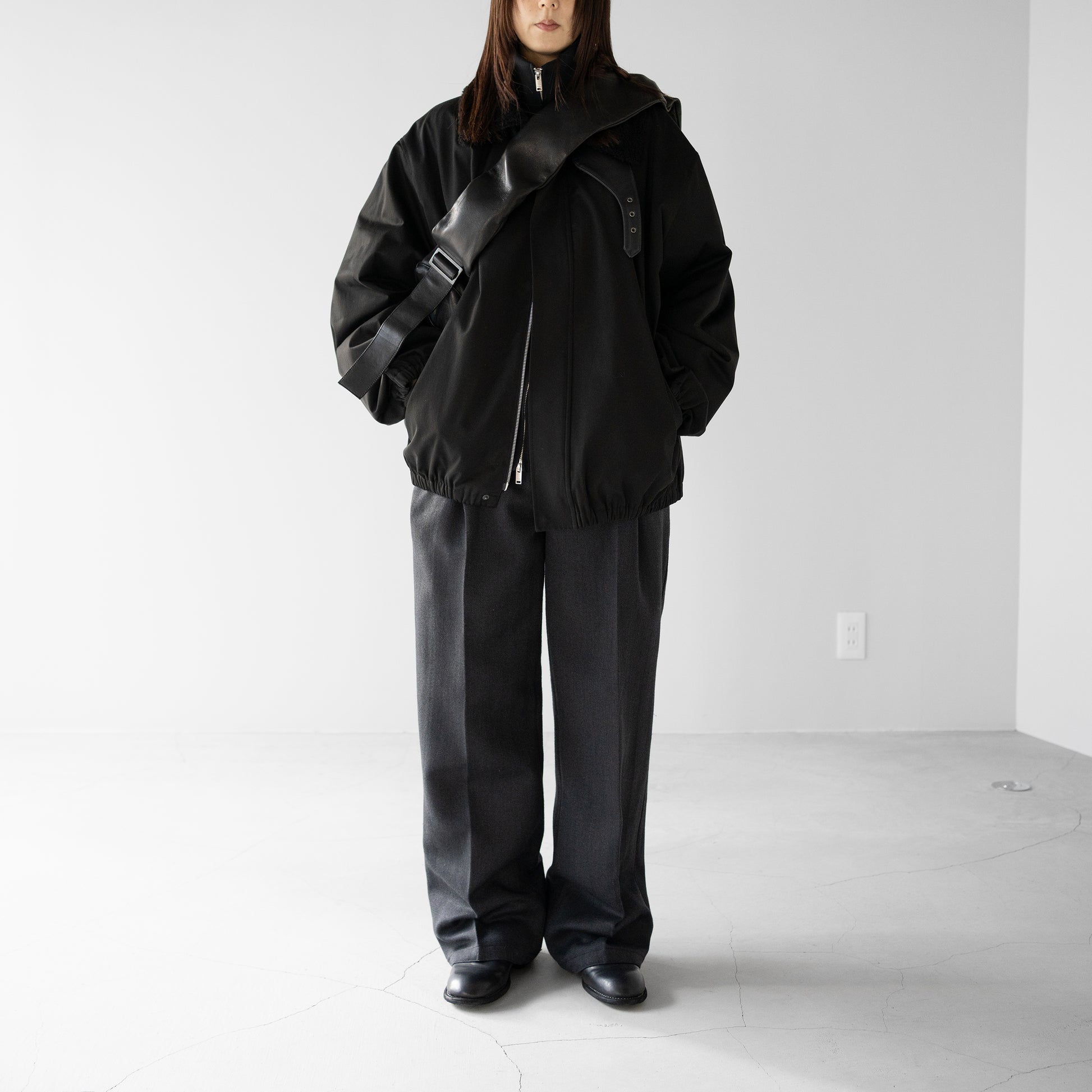 ショルダー内側にレザーベルトを施し、長さを調整することでショルダー部分にギャザーが寄るように設計。 両サイド部分の金属のリベット、表地同素材のキーループが少しのエッセンスに。