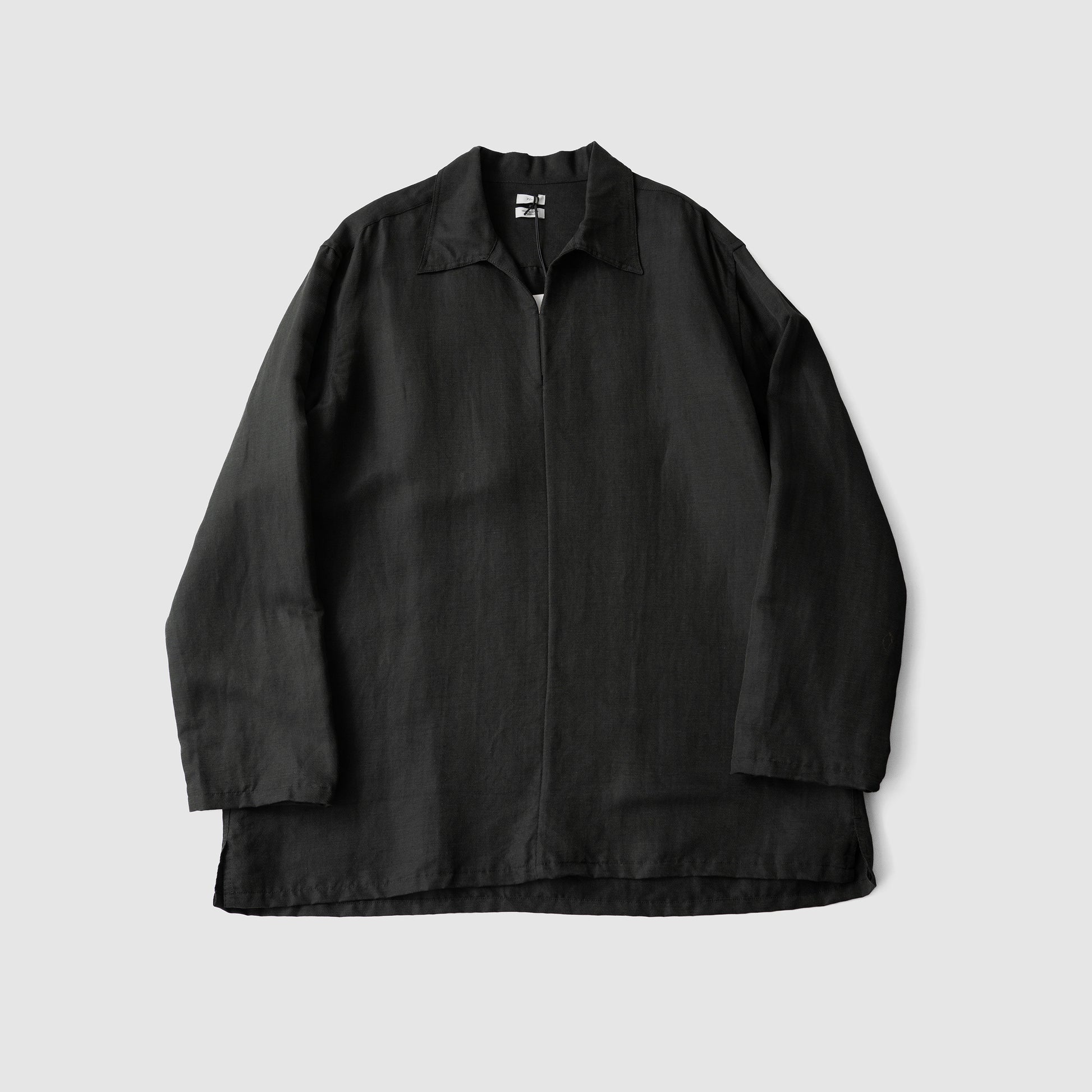 YOKE/ Linen Silk Kersey Skipper Shirt "BLACK"