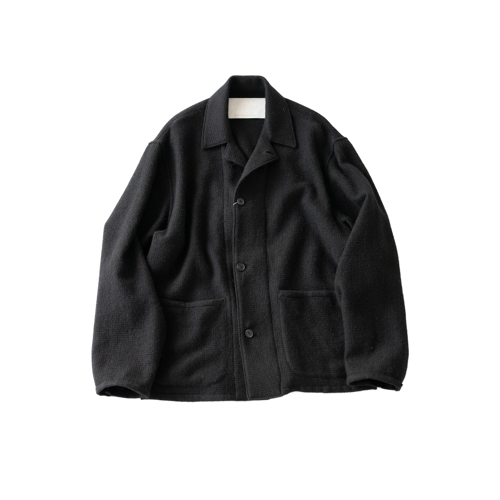 是非触って袖を通してみてください* 型はカバーオールのような感覚で羽織れるラフなシャツジャケットを目指して作成致しました。 装飾性を一切削ぎ落とし、機能と素材感をメインに、現代におけるシャネルスーツをイメージした商品となります。
